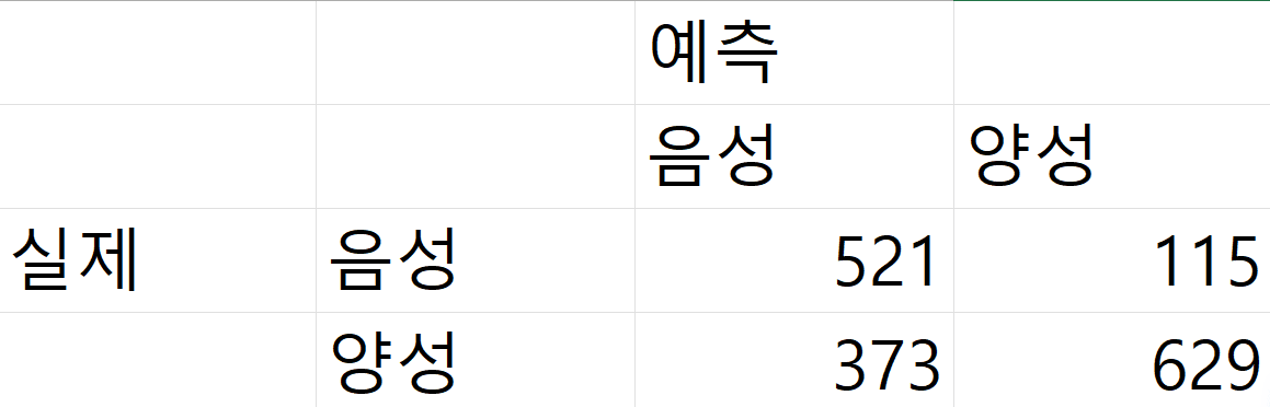 아래 혼동행렬에서 정확도(accuracy)를 계산해보세요.