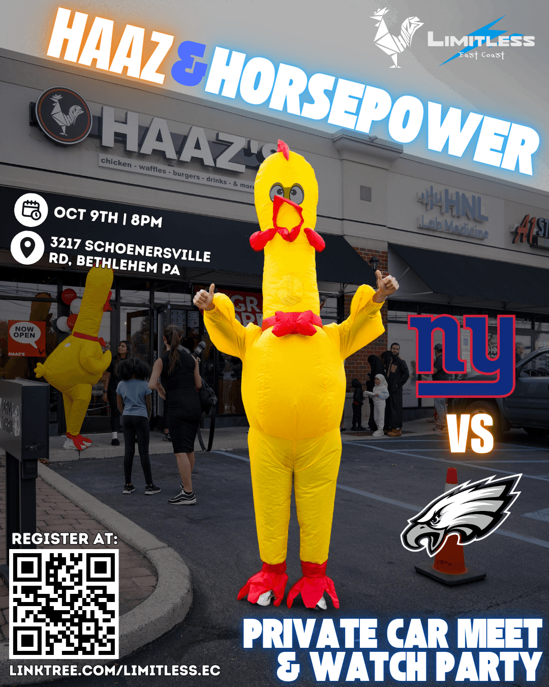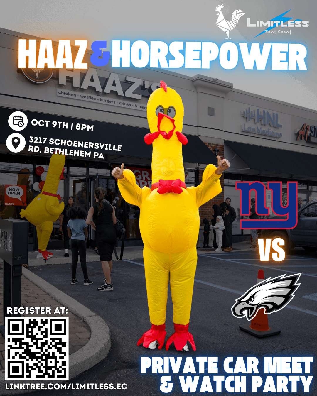 We’re teaming up with —the Lehigh Valley’s premier halal spot Haaz—for an exclusive private Car Meet & NFL Watch Party. Brand new high def TVS, quality eats & the regions best cars - what else do you need?