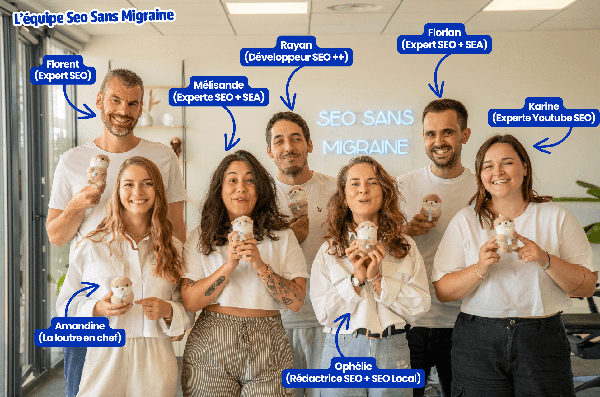 En lançant l'agence SEO Sans Migraine, je me suis entourée de loutres supplémentaires qui sont formées à mes techniques en SEO et SEA, avec qui je travaille au quotidien.