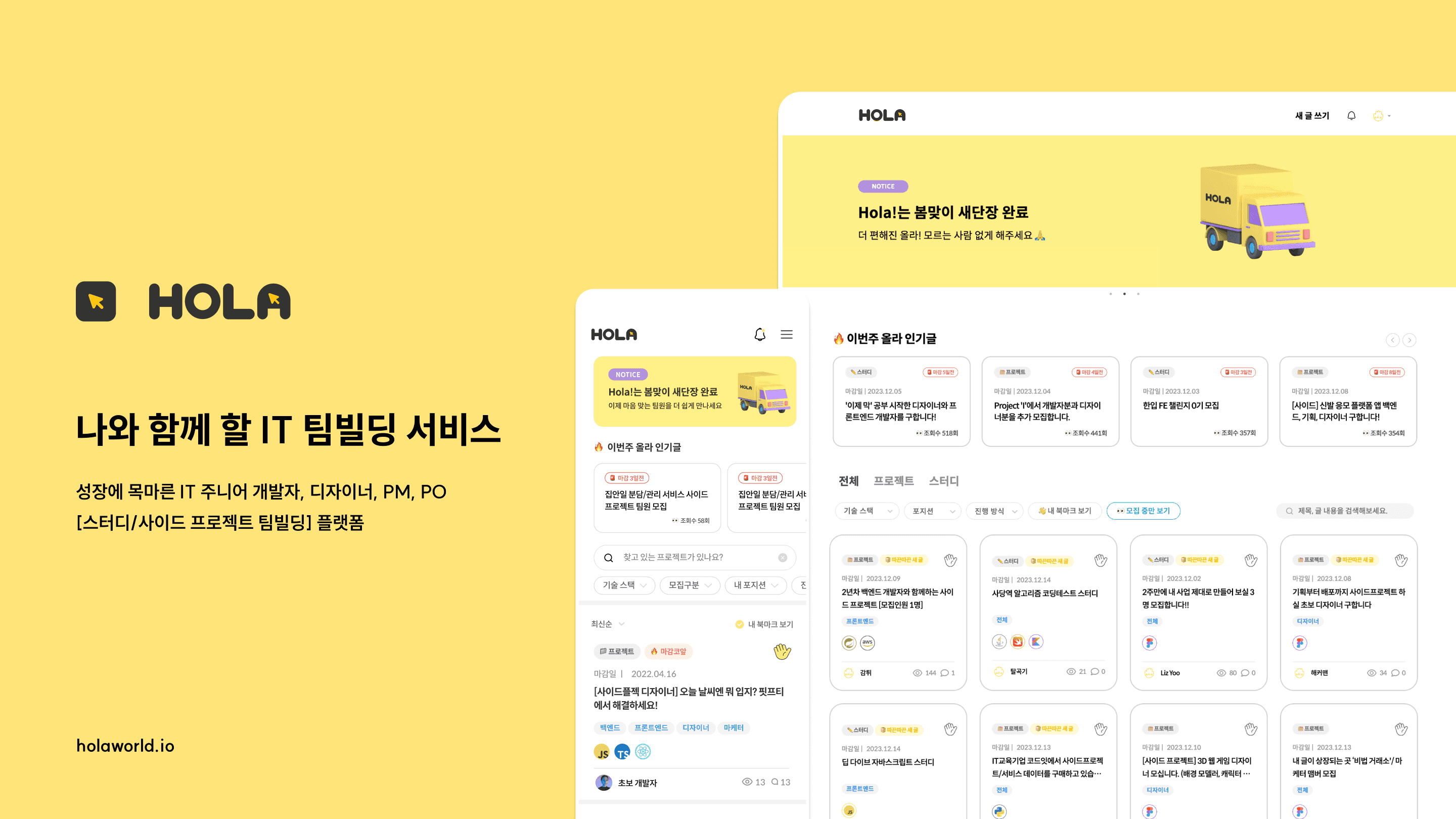 일 평균 PV 4,000, 13,000만명의 개발자, 기획자, 디자이너, 마케터 올리들과 함께하는 팀빌딩 플랫폼 Hola!에서 효율적으로 광고를 집행해보세요! (*25년 6월 기준)
