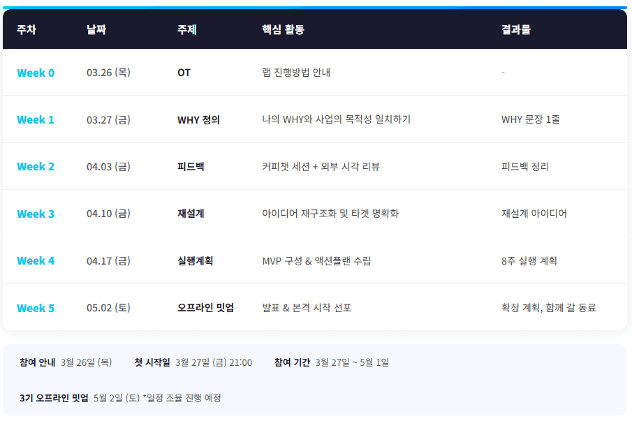 : 5월 2일 (오프라인 밋업은 필수 참여가 아니며, 추후 별도 신청 받습니다.)