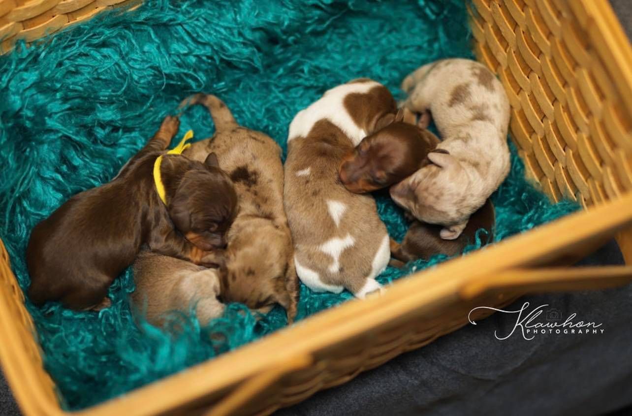 4. The buyer understands that we do sell miniature dachshunds and seller does not guarantee size, personality, length, weight, coat, temperament, or reproductive ability of the puppy. We specialize in “Miniature” which means that our puppies will be in-between the size of a standard Miniature. Their adult weight will rang around 6-14lbs unless otherwise specified by the seller. The Buyer understands that adult size of new puppy and other characteristics are estimates based on the puppy’s parents and Seller’s experience. while we breed specifically for certain size understand that sometimes based on diet and many factors, a puppy can be larger.