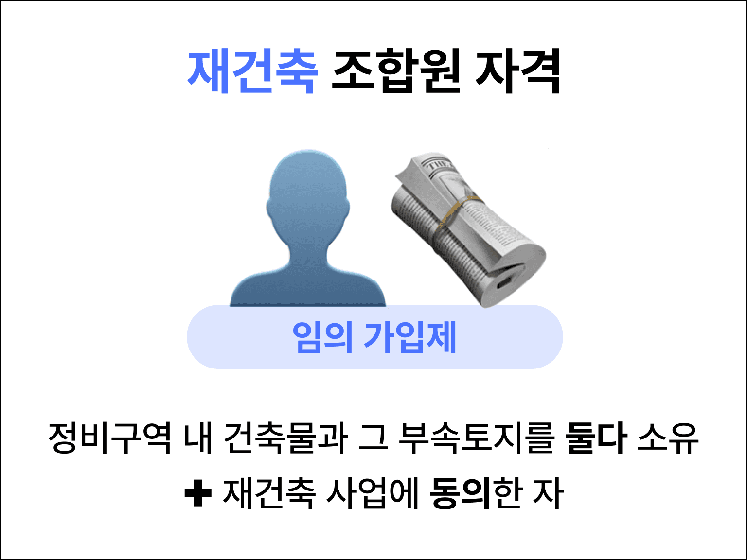재건축 사업의 경우, 건축물과 그 부속토지를 모두 소유한 자만이 조합원 자격을 갖게 되며, 조합원 자격을 갖추고 있는 자중 재건축사업에 동의한 자만이 조합원이 될 수 있어요! (동의서를 열심히 걷는 이유?! 👋🗞️)