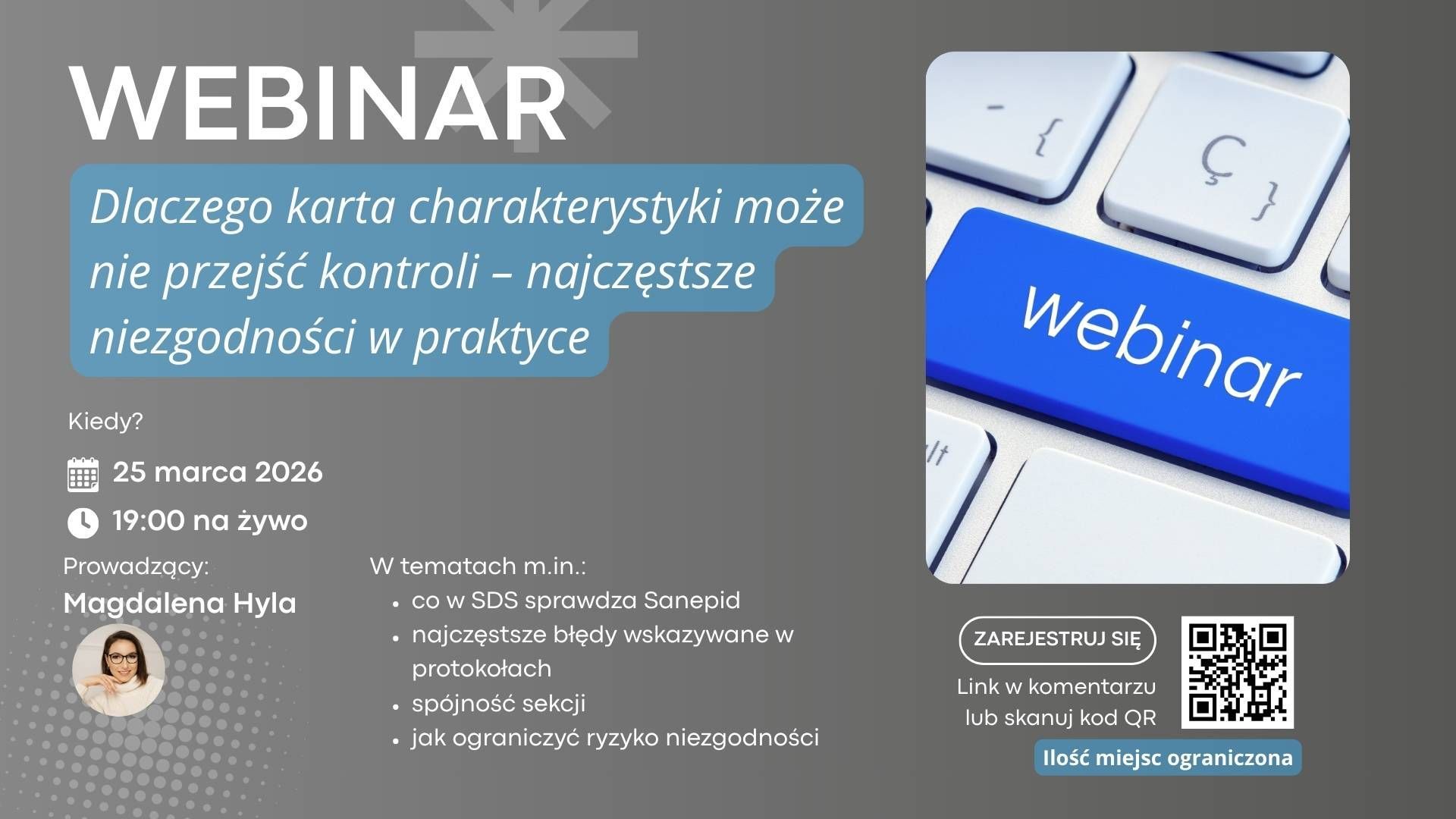 ZAPISZ SIĘ NA WEBINAR ONLINE Dlaczego karta charakterystyki może nie przejść kontroli – najczęstsze niezgodności w praktyce