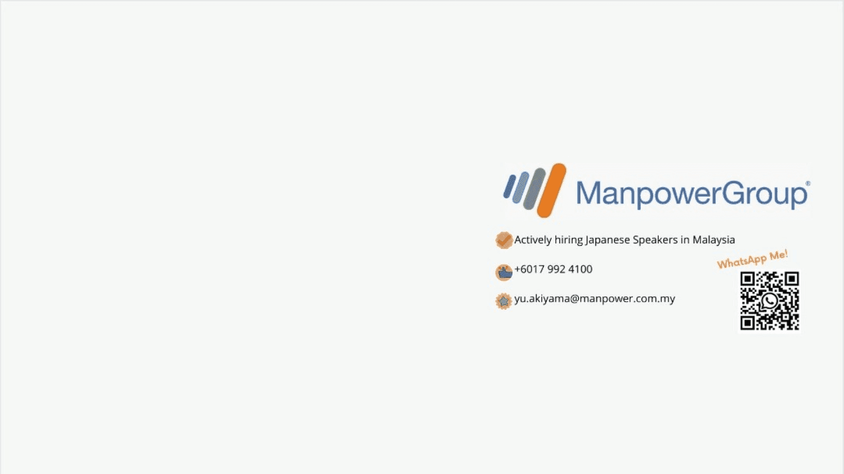マンパワーグループ マレーシアのオリバーサミュエル健太郎と申します。マレーシア就職をご希望の求職者の皆さまに向けて、情報提供から選考対策、