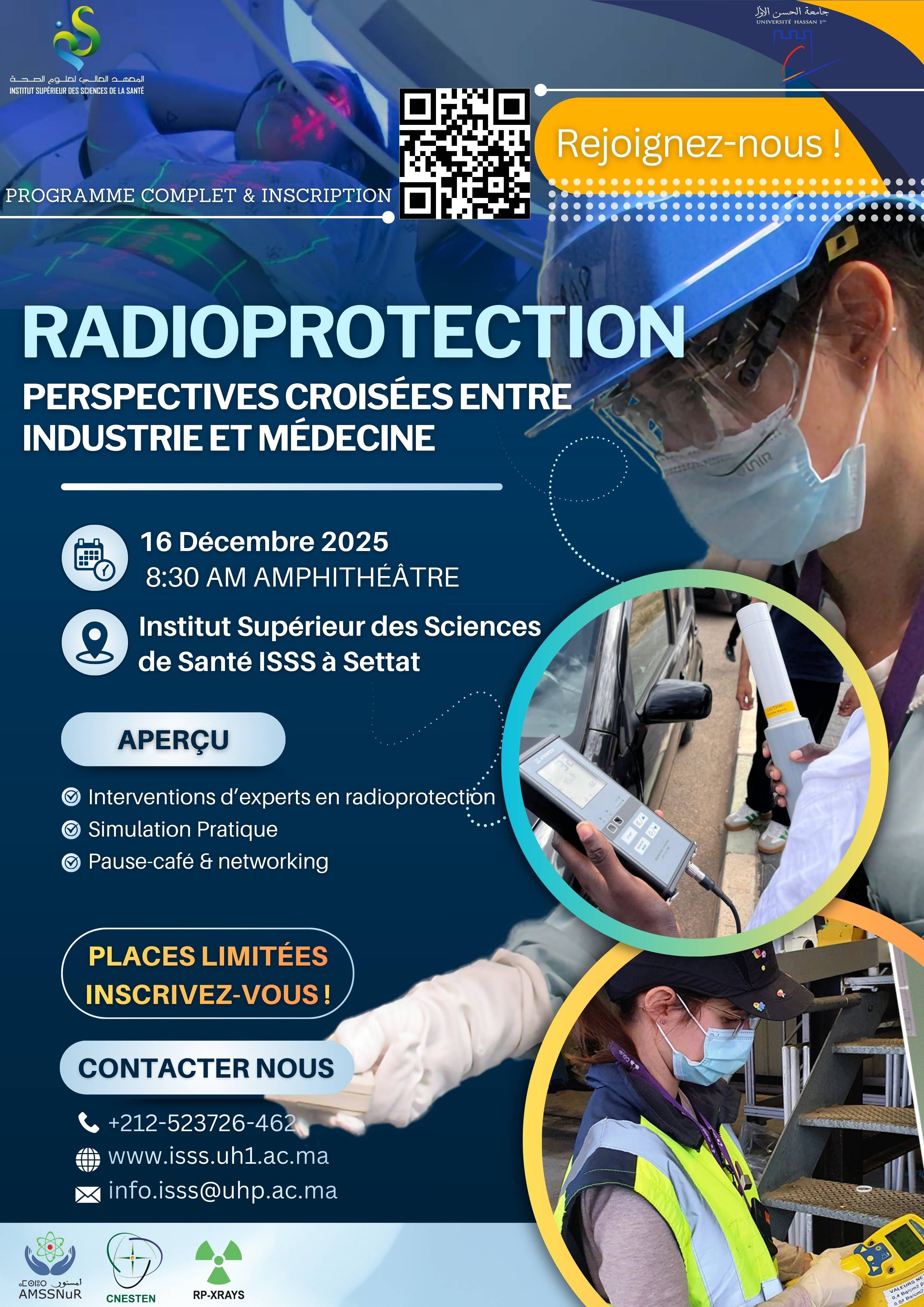 Dans le cadre de l’événement « Radioprotection : Perspectives croisées entre industrie et médecine », organisé à l’ISSS Settat, nous vous invitons à remplir ce formulaire pour confirmer votre participation.