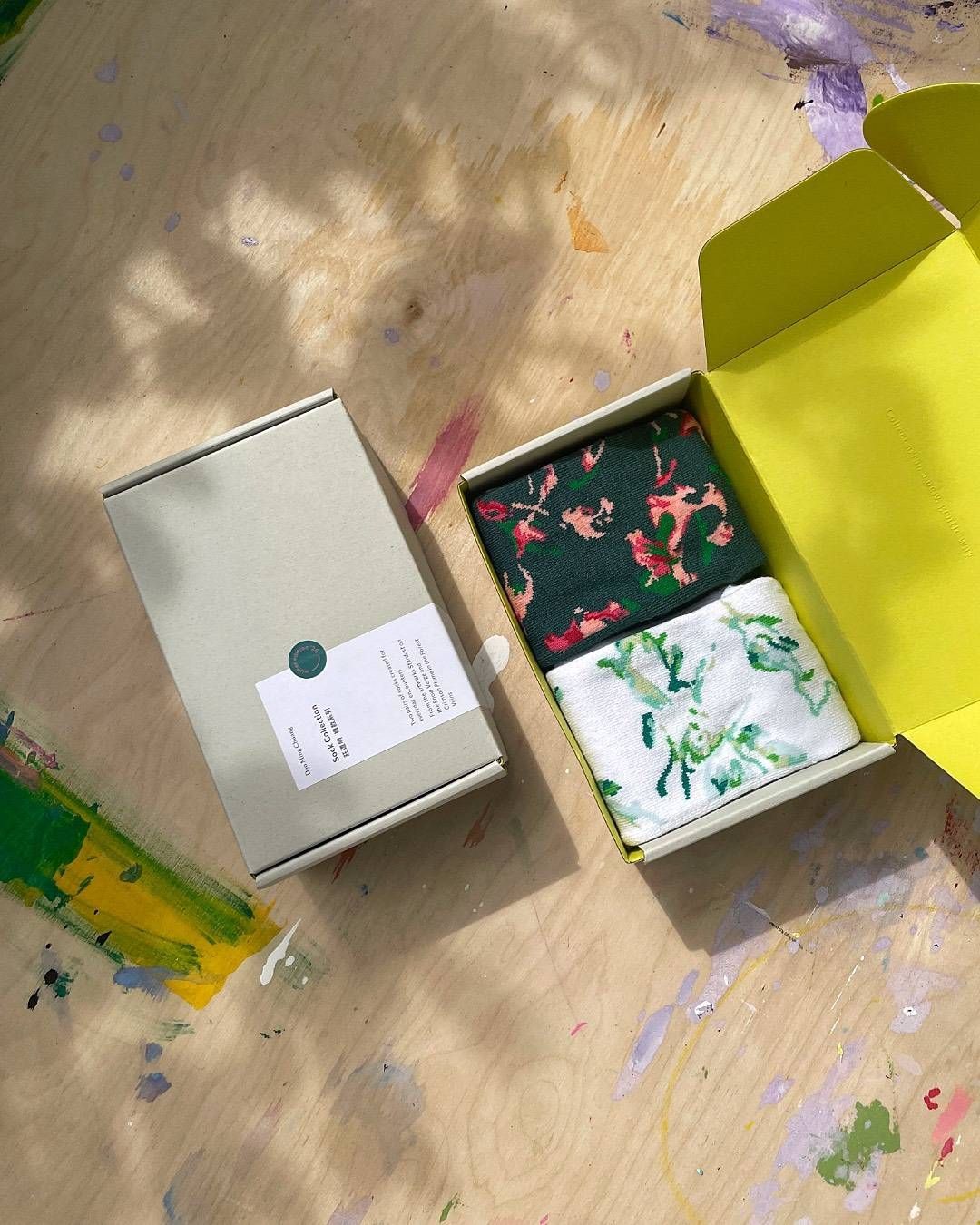 兩雙襪子(白底、綠底襪款 各一)