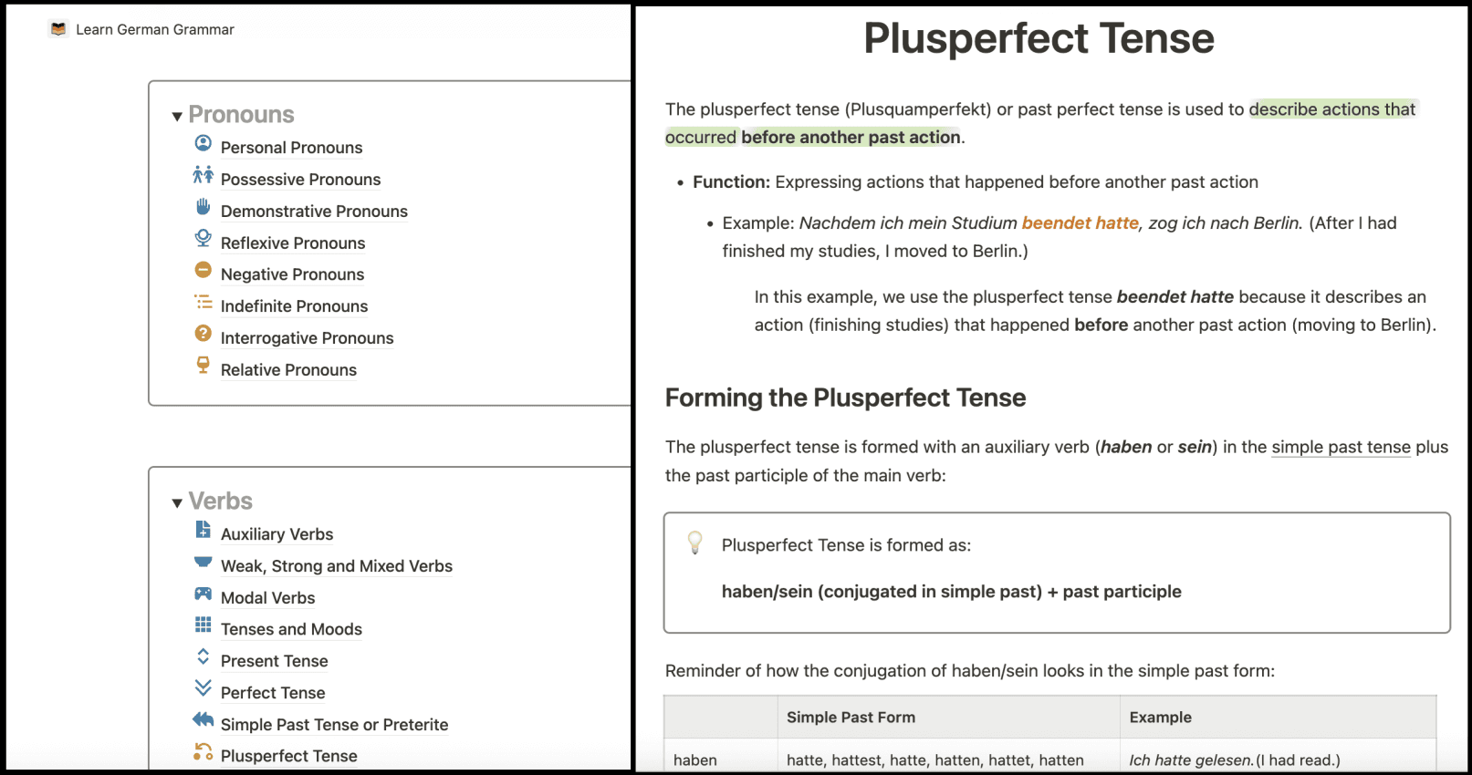 We are preparing a grammar reference guide for self-study, a useful resource when preparing for German certification exams such as TELC, Goethe or DTZ.