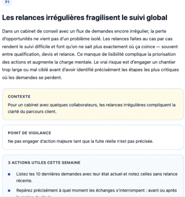 Exemple du retour complémentaire envoyé par email : une lecture courte + 3 actions utiles:
