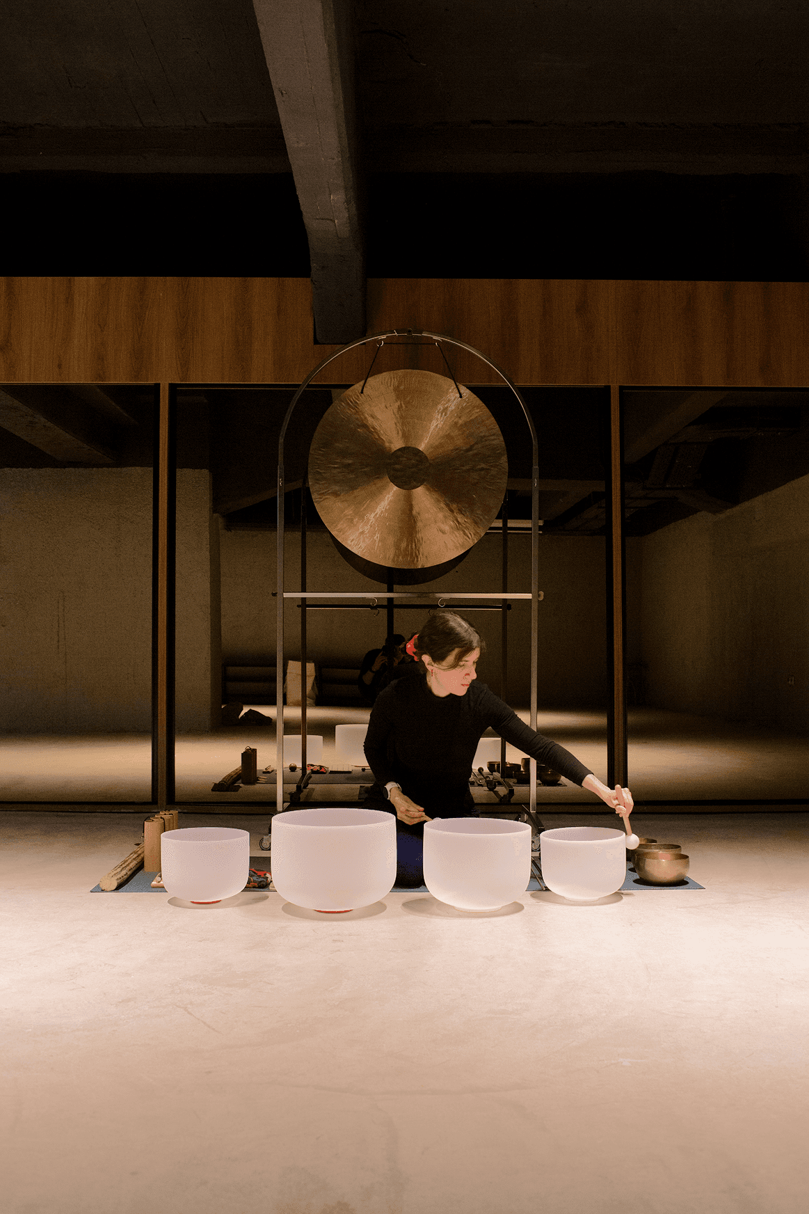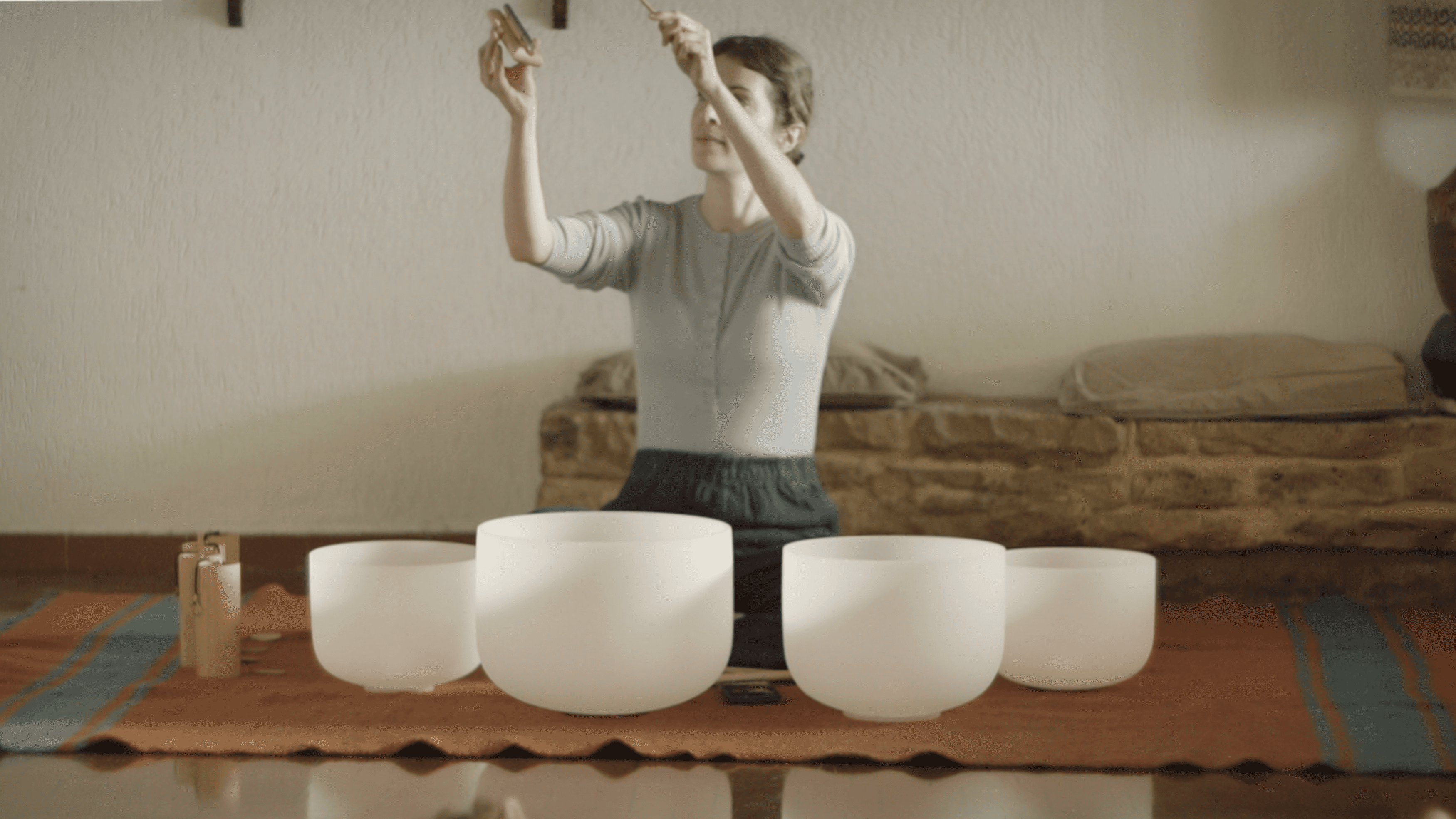 During a sound bath, instruments like the gong and crystal bowls create an immersive soundscape gently guiding you into a deeper state of relaxation. As the layers of sound unfold, the body begins to soften, releasing tension and settling into profound rest and restoration.