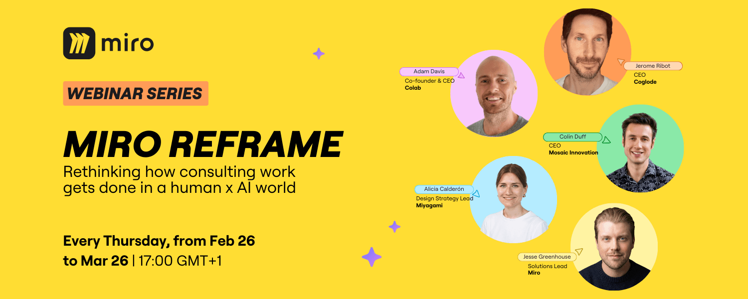 Miro Reframe brings together consultants and agency leaders exploring how to future-proof delivery, client engagement, and impact in the age of AI.