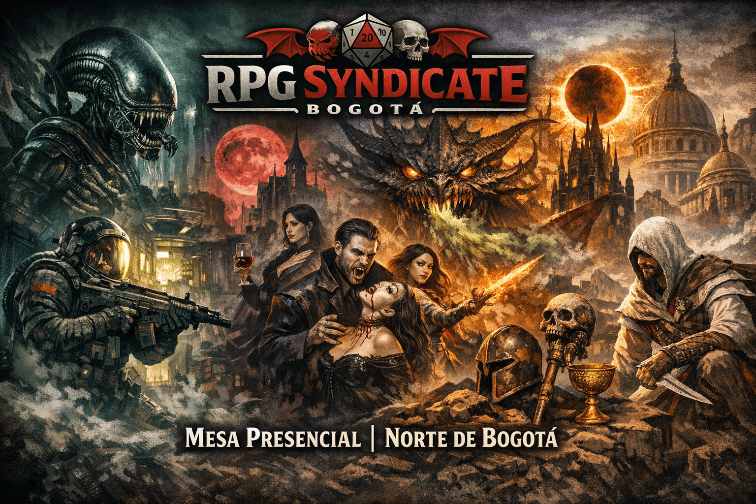 RPG Syndicate Bogotá es una comunidad dedicada a crear experiencias inmersivas de rol presencial en el norte de Bogotá.