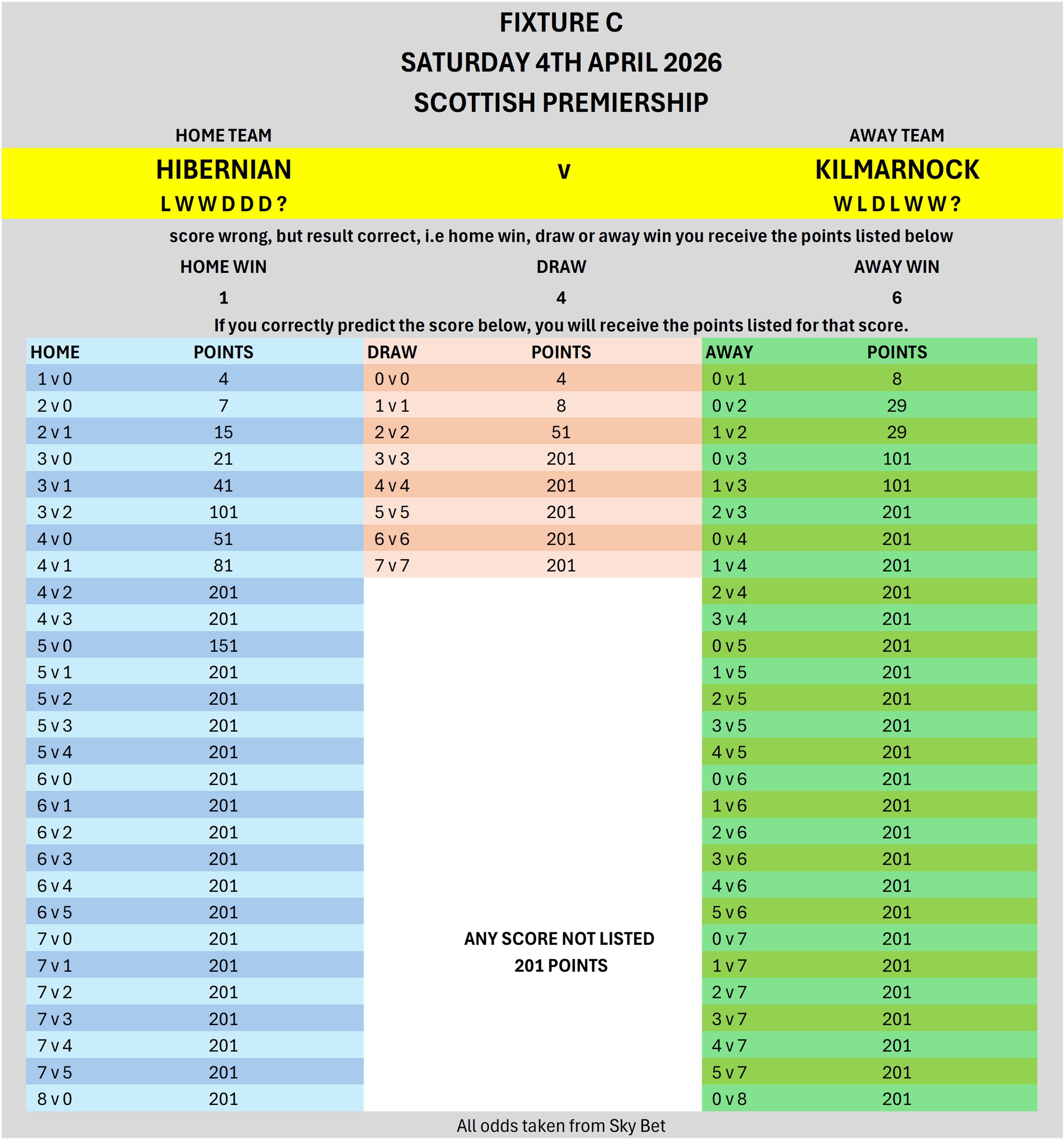 SCORE FOR FIX C