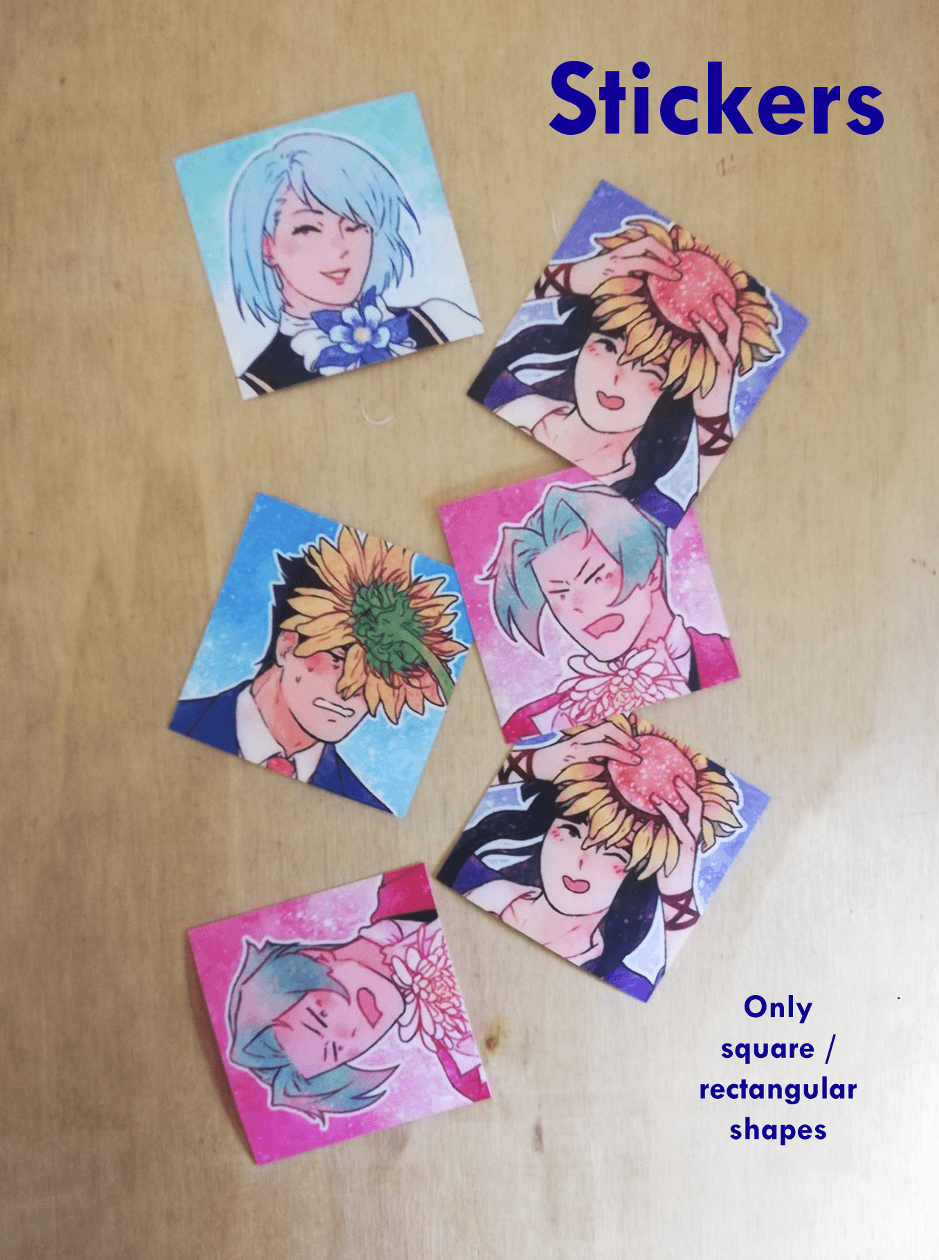 Stickers that have irregular shapes (die-cut or kiss-cut) might be possible but I will probably only do preorders for those.