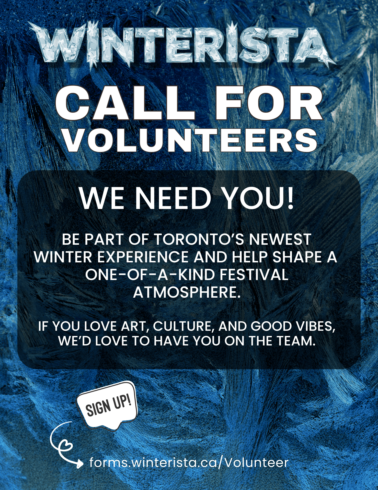Volunteers are the heart of Winterista, helping bring our creative vision to life and ensuring every guest has a magical experience. Whether you’re passionate about events, art, community, or simply love being part of something special, we’re excited to learn more about you.