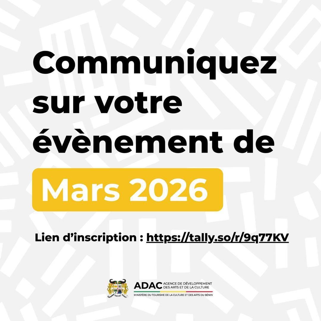 Vous êtes opérateur culturel au Bénin et vous avez un événement à venir ? L'Agence de Développement des Arts et de la Culture vous accompagne dans la promotion de vos initiatives.