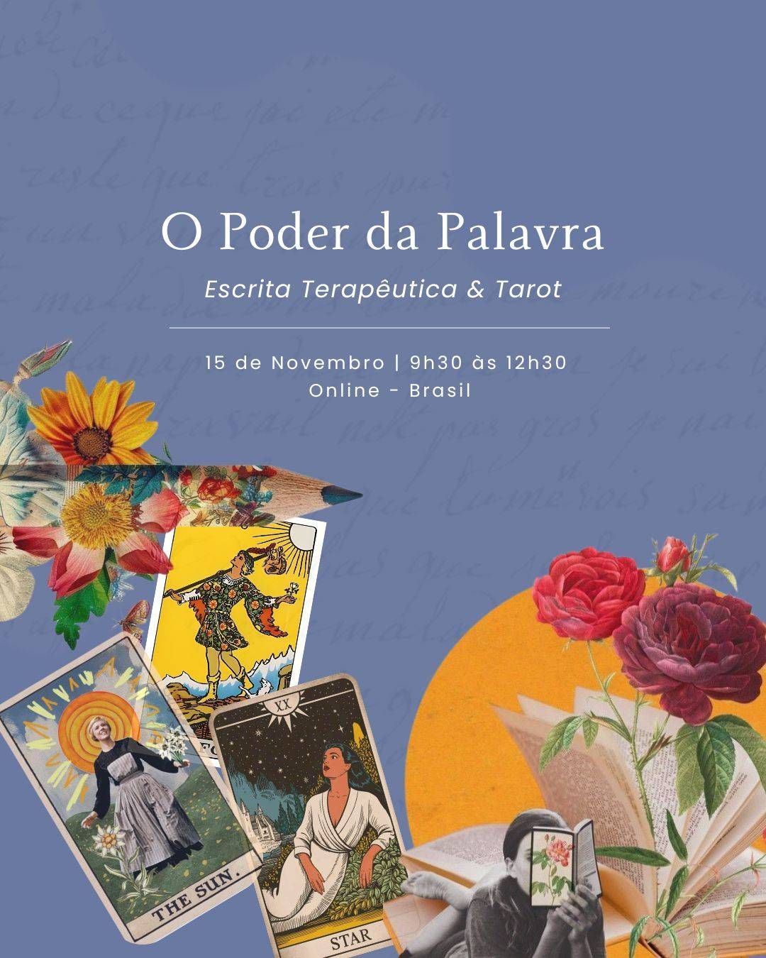 No dia 15/11 - 9h às 12h30, convidamos você para uma roda de conversa e escrita terapêutica inspirada nos arcanos do Tarot.