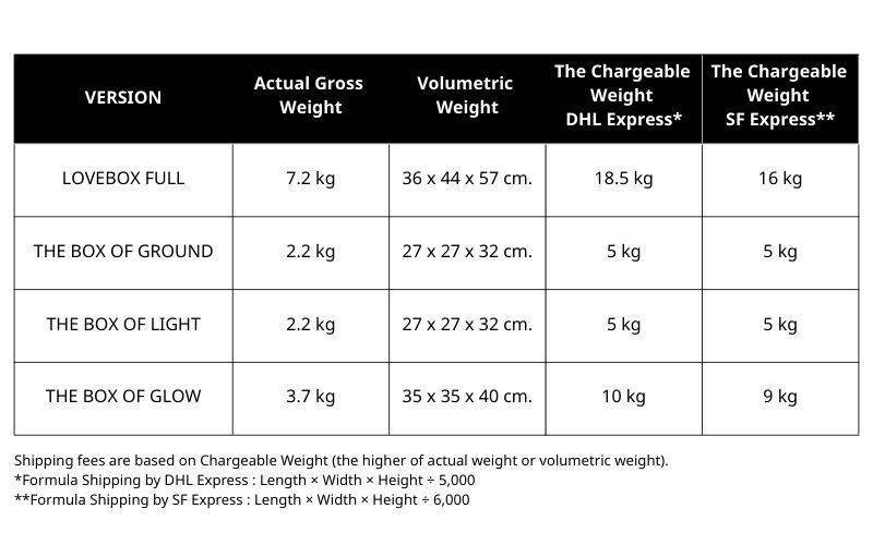* Volumetric Weight (length × width × height)