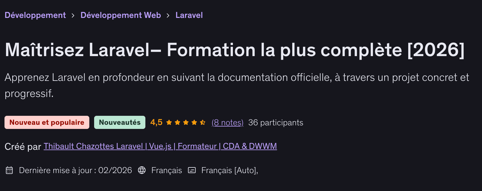 https://www.udemy.com/course/laravel-fr/?referralCode=D368E83E8CAD843729B4