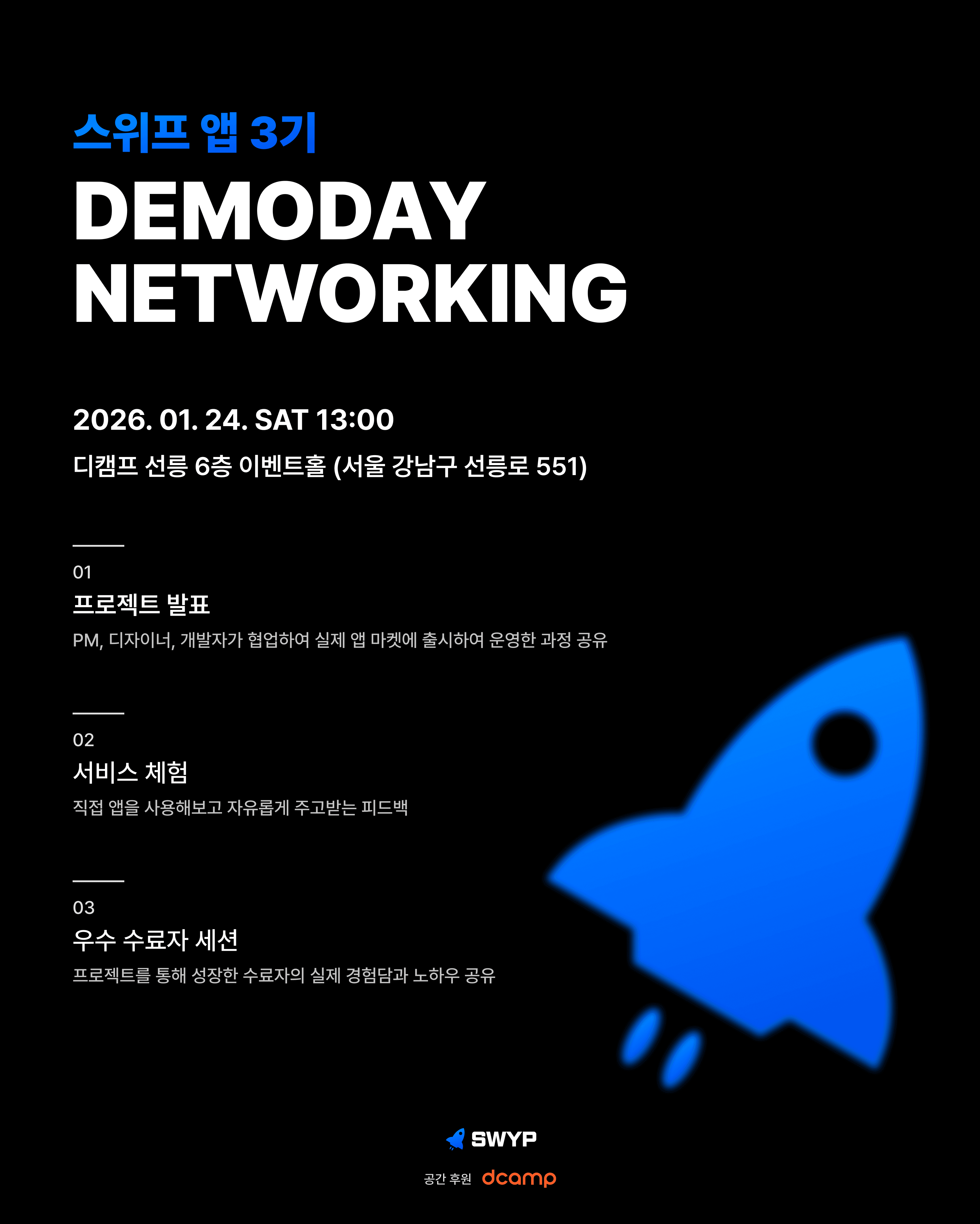 - 장소: 디캠프 선릉 6층 이벤트홀 (서울 강남구 선릉로 551)