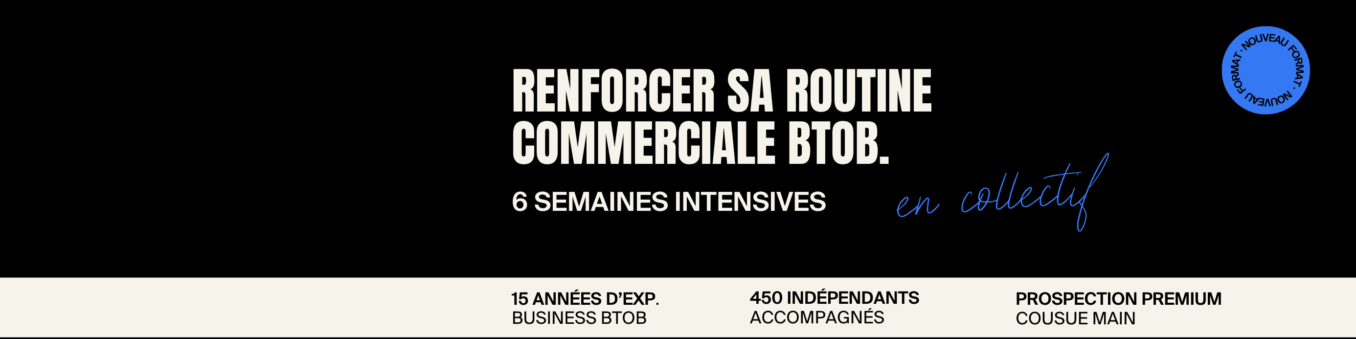 Je souhaite lancer un accompagnement collectif court et dynamique, orienté action, sur 6 semaines, destiné aux indépendant·es qui souhaitent reprendre le contrôle d'une routine commerciale qui leur ressemble et sécuriser leur acquisition de clients BtoB.