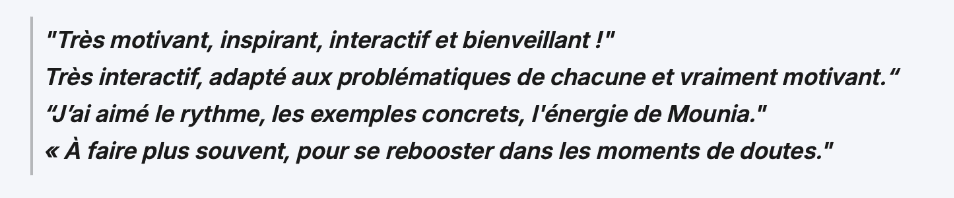 Pour m'assurer que chacune des participantes bénéficie du meilleur accompagnement possible, j'ai décidé de limiter le nombre de places disponibles.