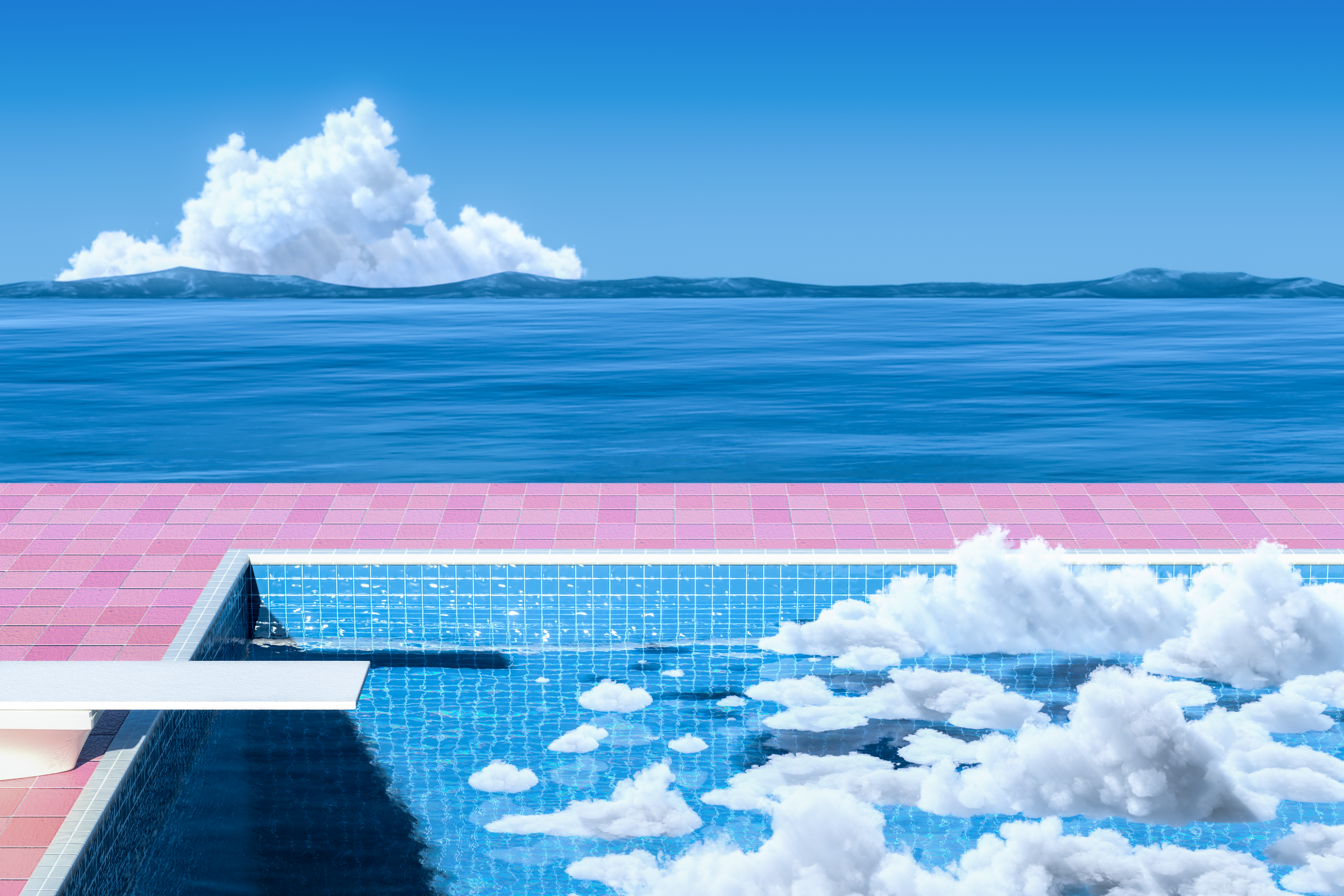 Clouds float over a tranquil pool, are you jumping in?