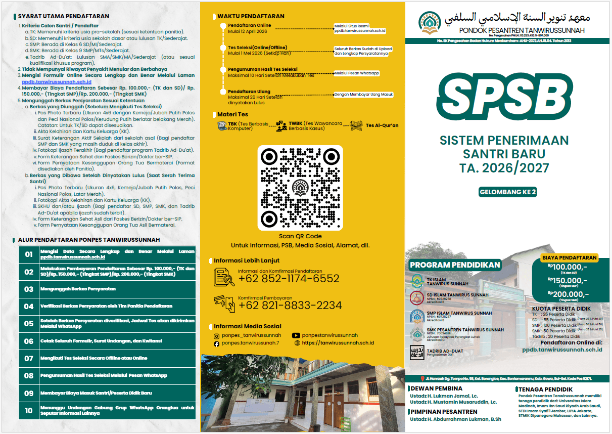Transfer ke BANK BSI Rek. 2244003004 a.n Yayasan Ponpes Tanwirussunnah