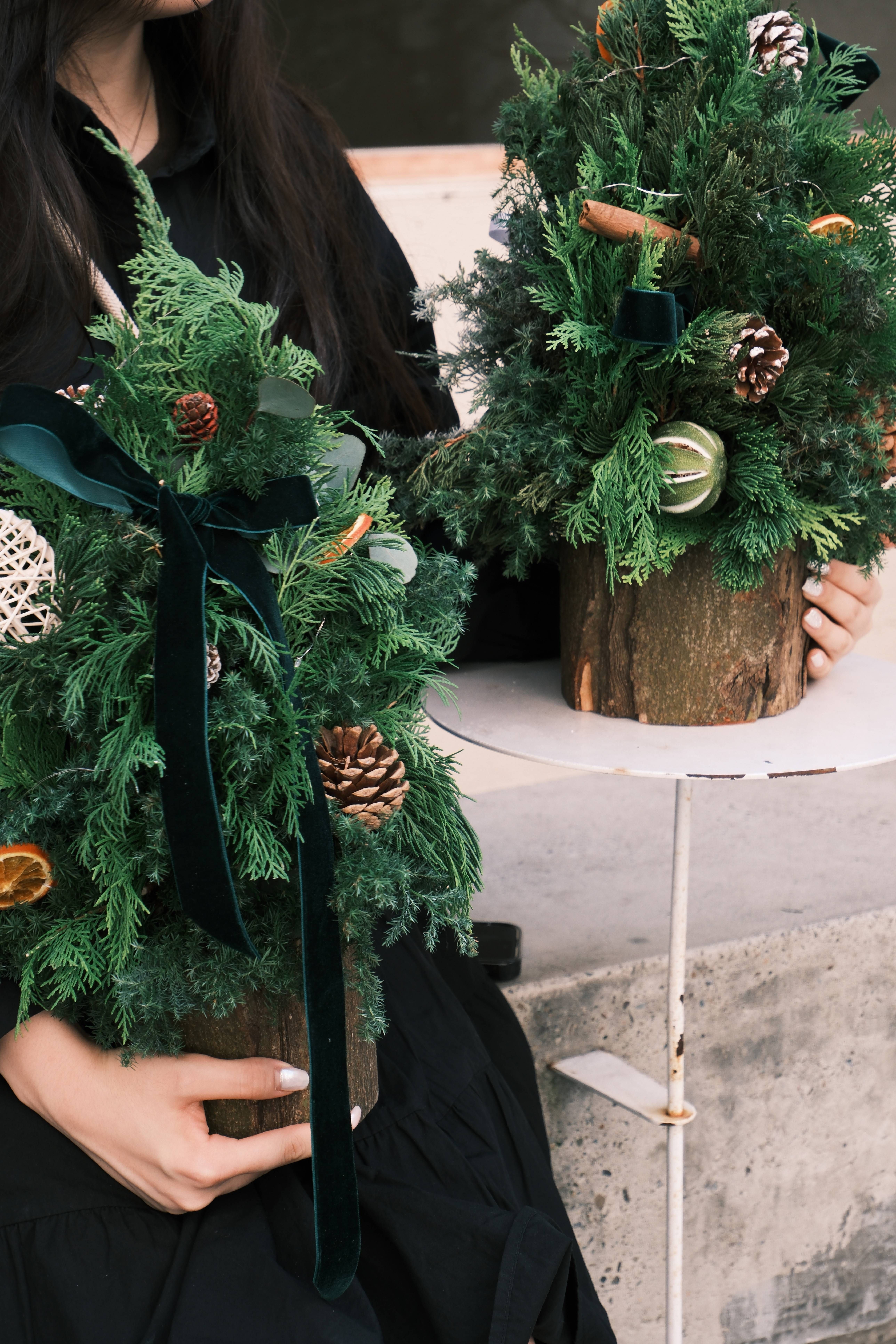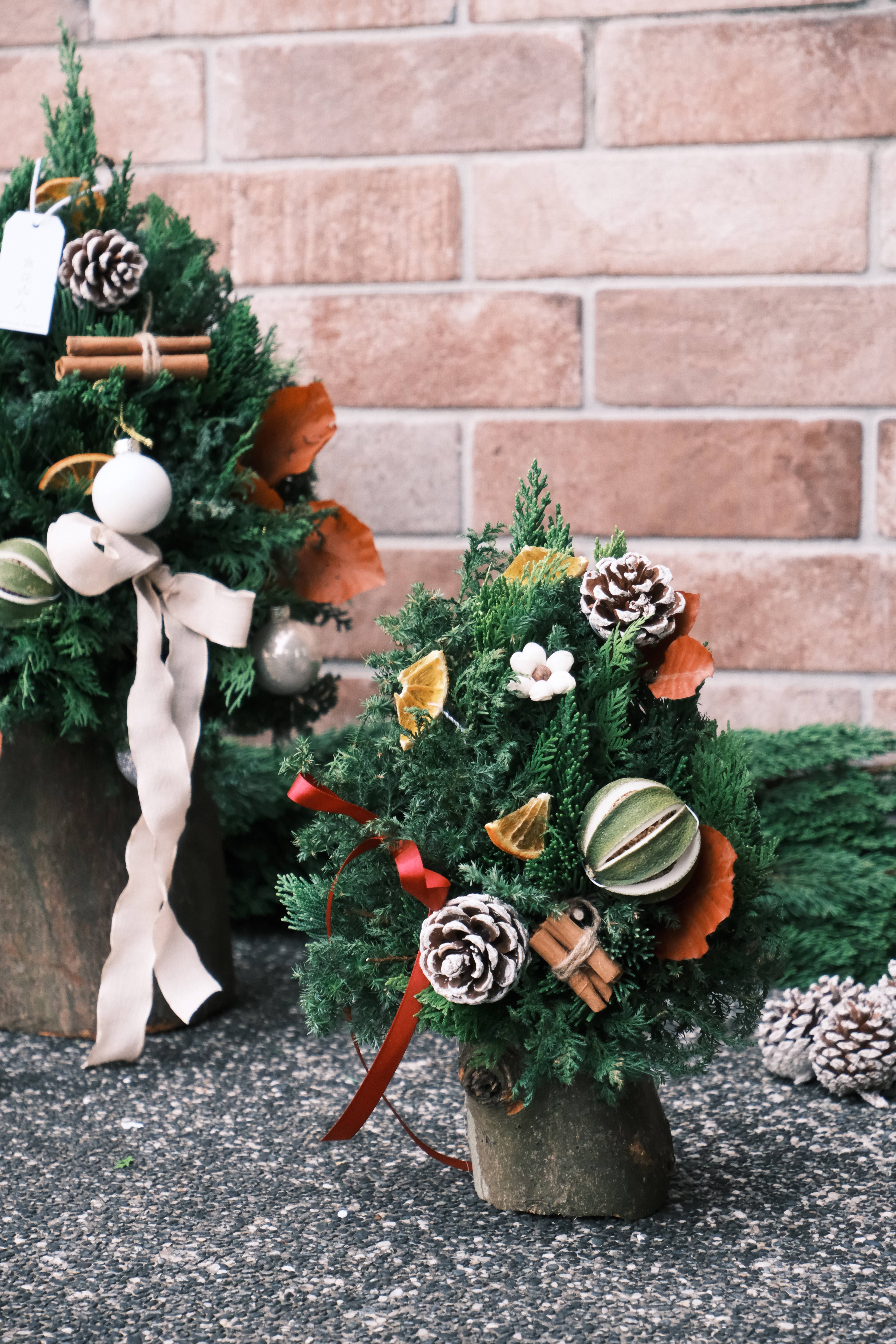 ✨ 選材自然純粹 來自山林的植物枝葉與樹幹,輔以松果、肉桂棒與乾燥果皮,讓每一個聖誕作品都散發出獨特的天然香氣與質感。