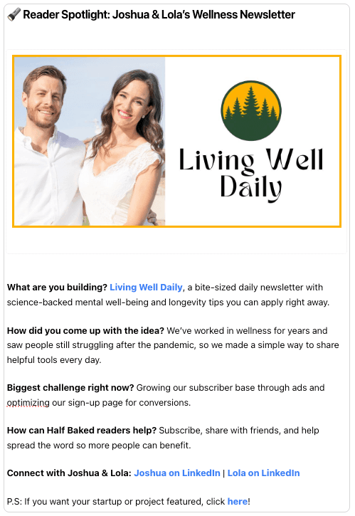 We do this in our "Reader Spotlight" section where we feature the founders of one company to highlight the exciting things being built. We also make a LinkedIn post about your story to maximise visibility!