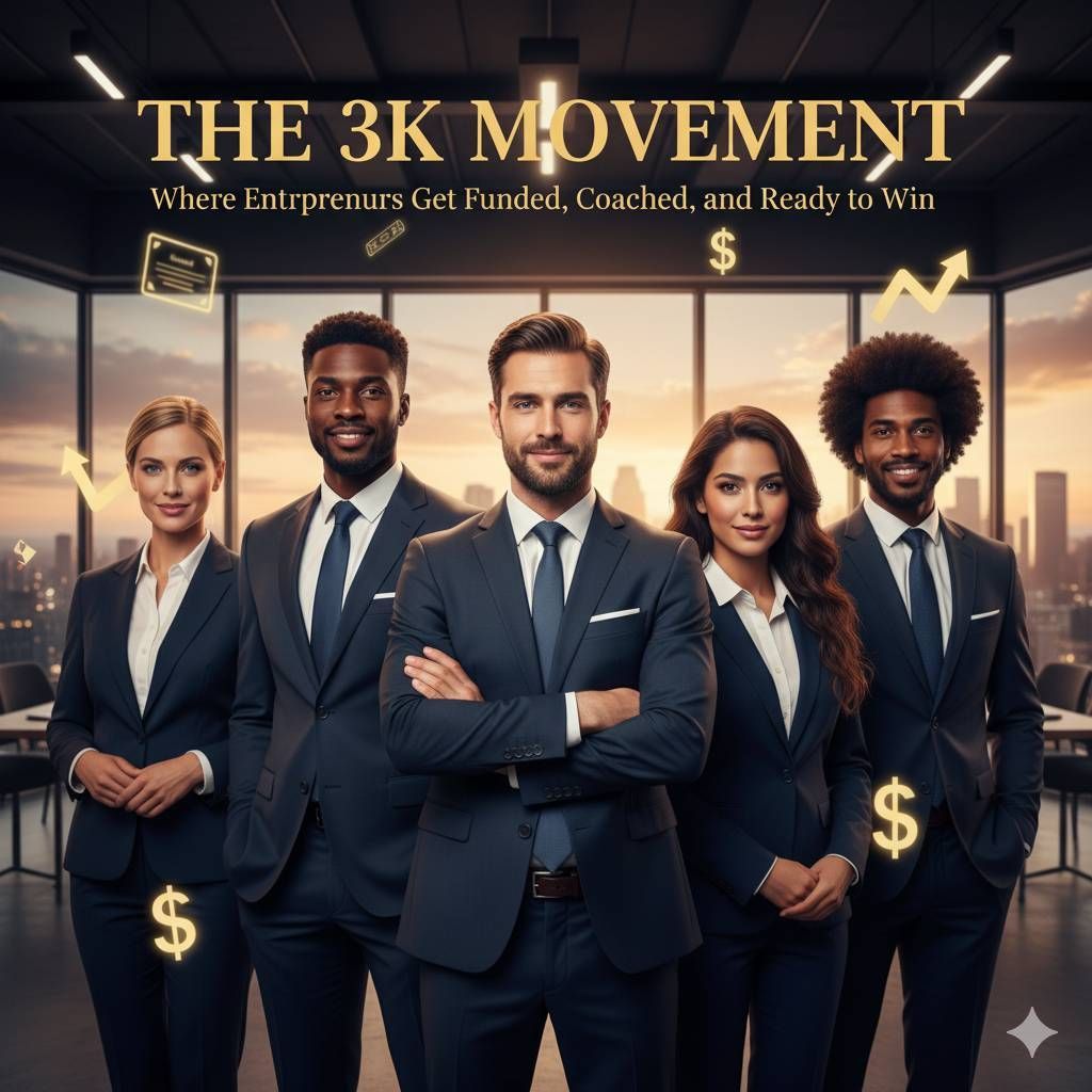 If you’ve got the backbone to bet on yourself and the drive to actually follow through, then this is where that energy finally pays off. Don’t overthink it. Step up, take the shot, and own the results.You’re here because you believe in your business idea — and you’re ready to put it to the test. The 3K Movement isn’t just another “funding program.” We’re flipping the script on how entrepreneurs get the resources they need.
