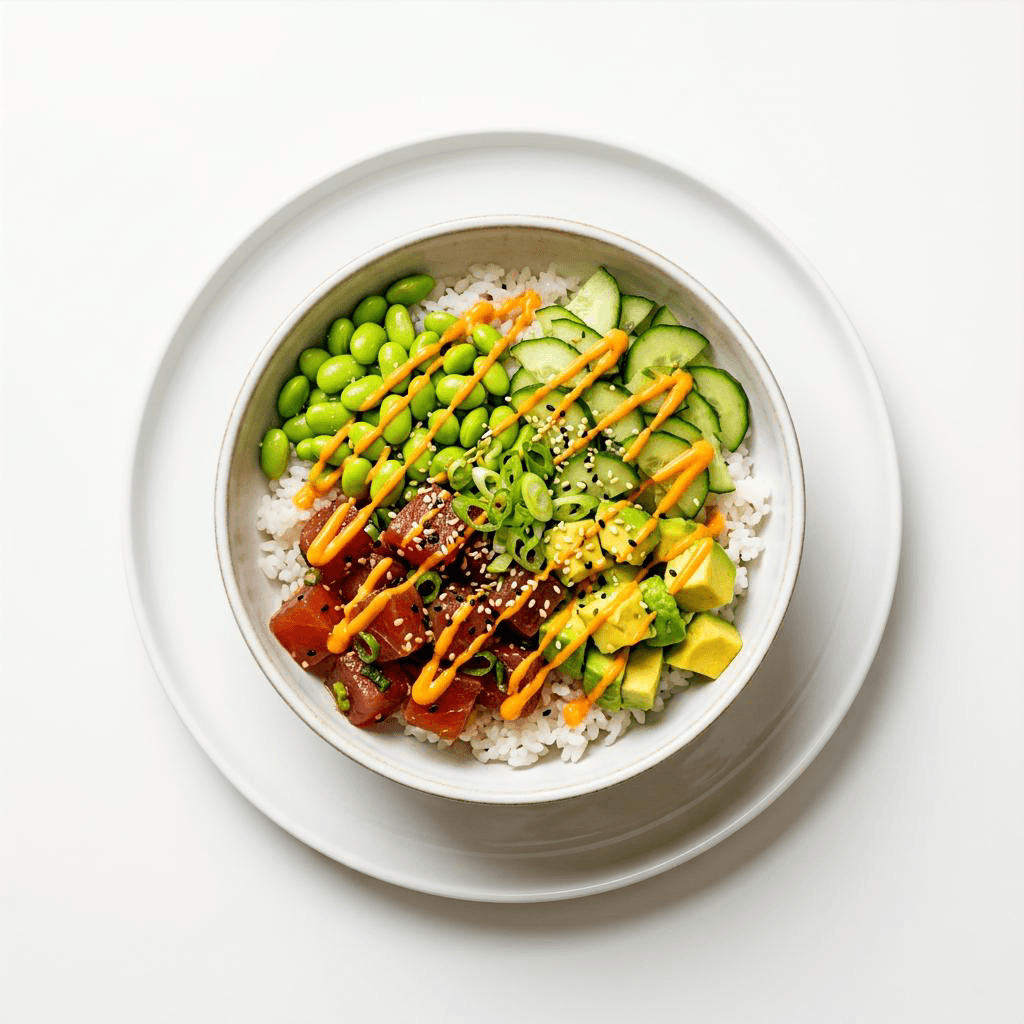 Spicy Ahi Tuna poke bowl with edamame, cucumber, avocado, sesame, sriracha aioli - $20