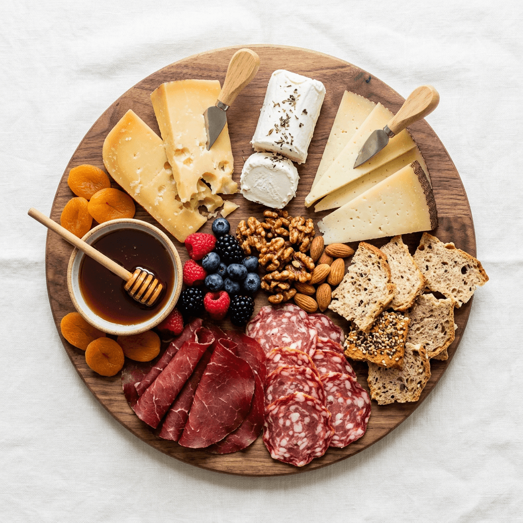 The APCS Classic Board — 3 cheeses, 2 cured meats, seasonal fruit, nuts, local honey, artisan crackers - $25