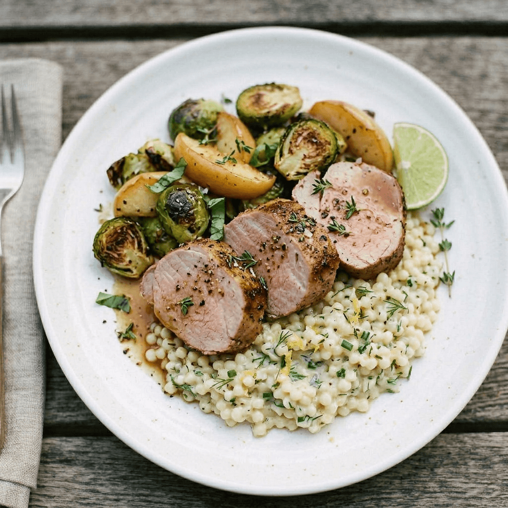 Pork Tenderloin with Roasted Apples and Brussels Sprouts —