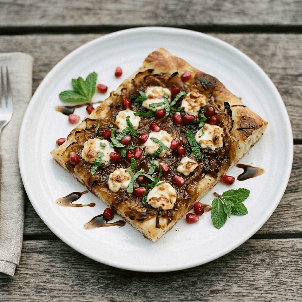 Caramelized onion and goat cheese flatbread