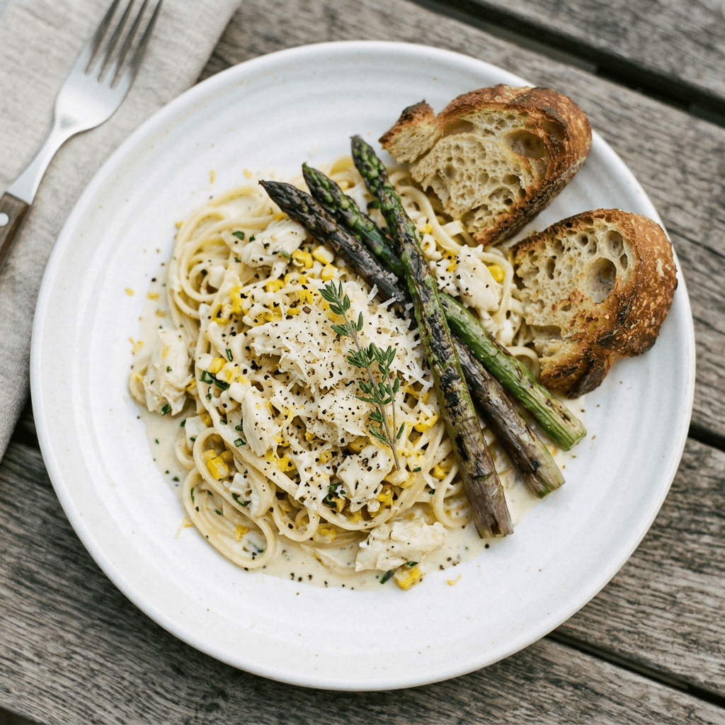 Crab and Corn Linguine —