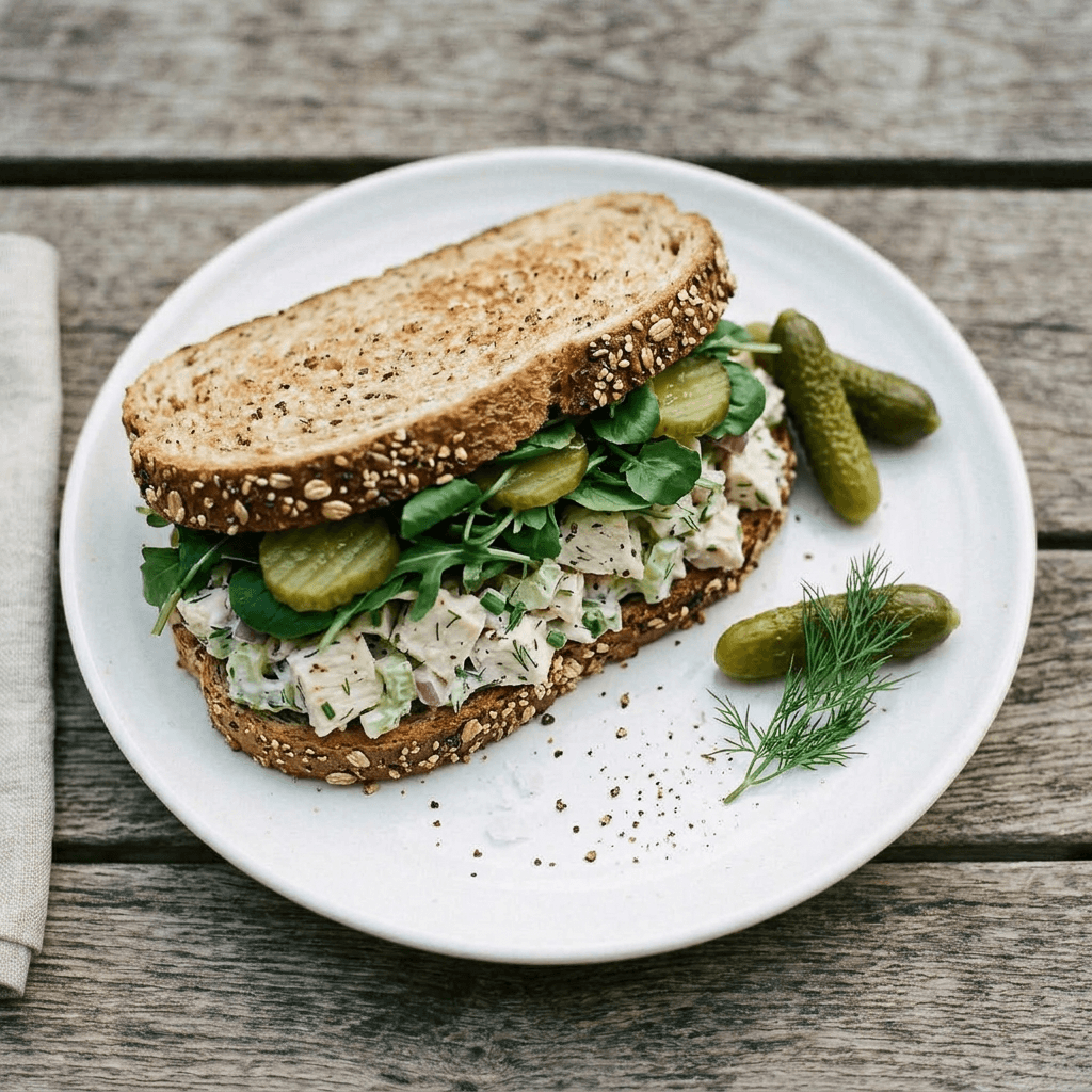 Chicken Salad Sandwich – Whole Wheat, Pickles & Greens - $12