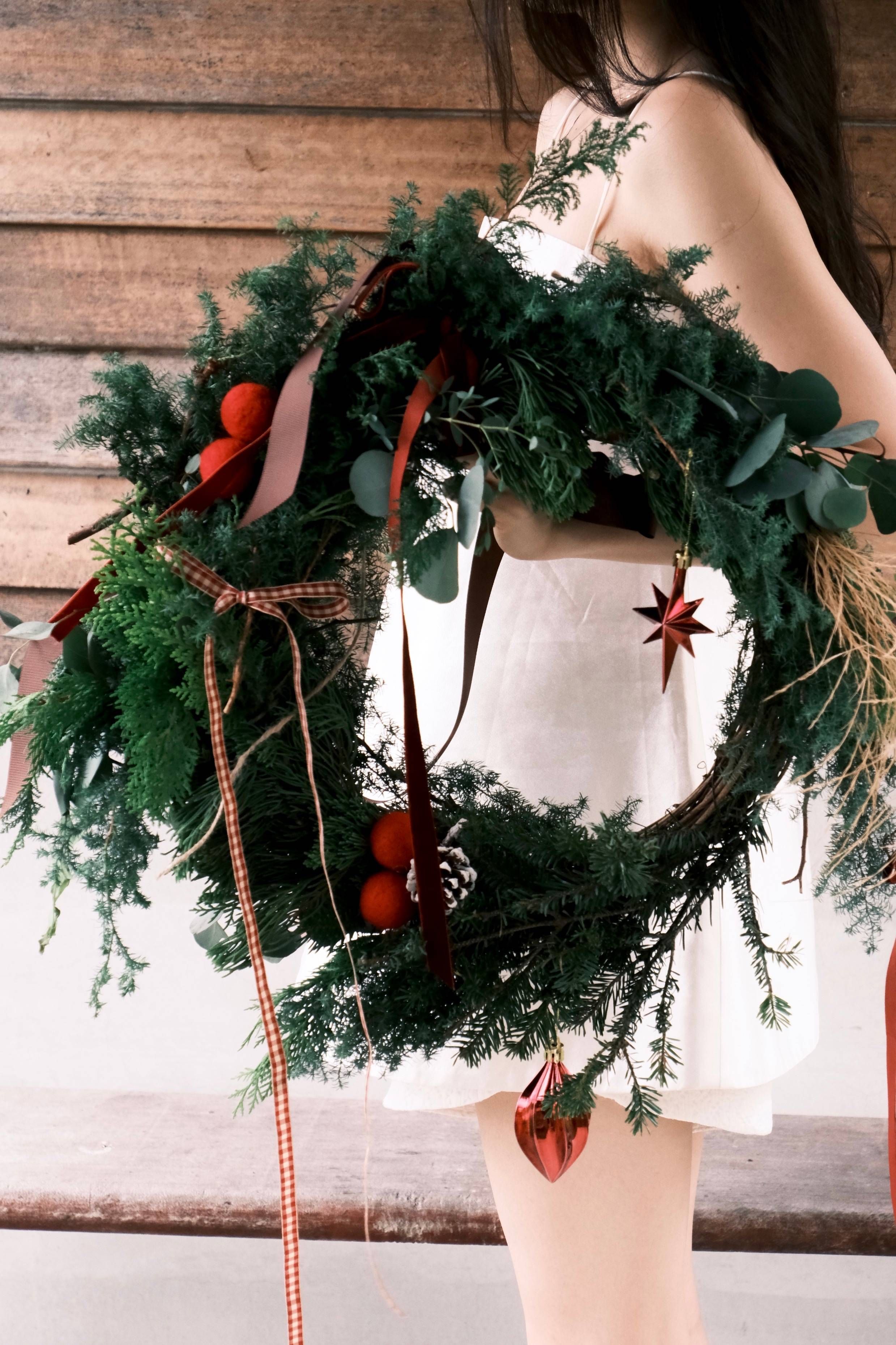 我們會依照當季最新鮮的葉材,去創作屬於2025的聖誕花圈。這次的課程,沒有完成的畫面、沒有設限,只要跟著植物的節奏,葉材的型態!