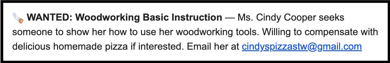 Here's a past example of a classified ad in the newsletter: