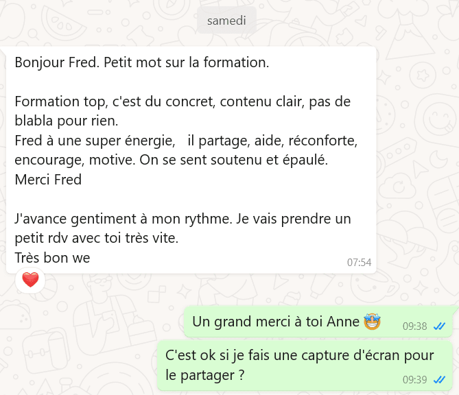 👉 Un groupe WhatsApp dédié, où je réponds personnellement à toutes les questions