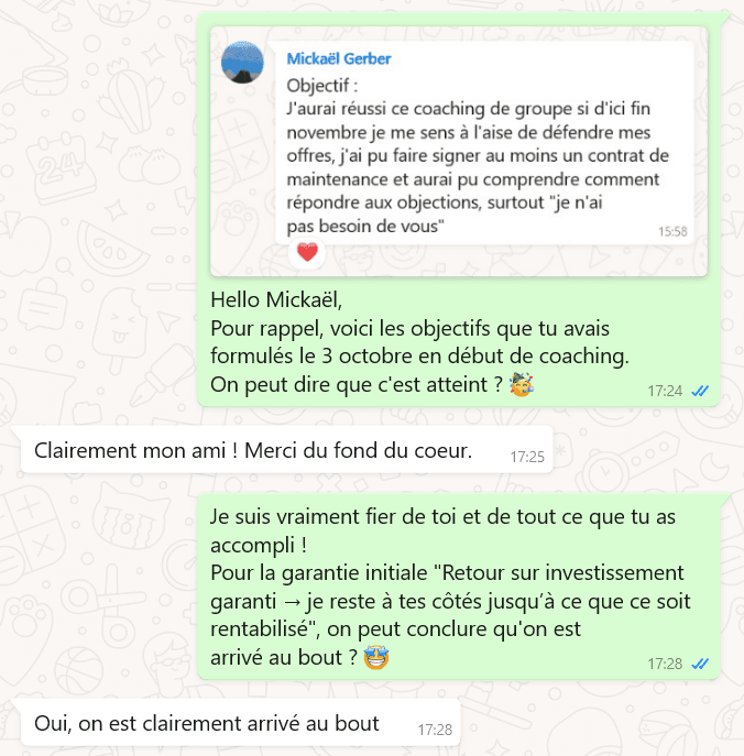 - retour sur investissement garanti → je reste à tes côtés jusqu’à ce que tu sois satisfait(e)
