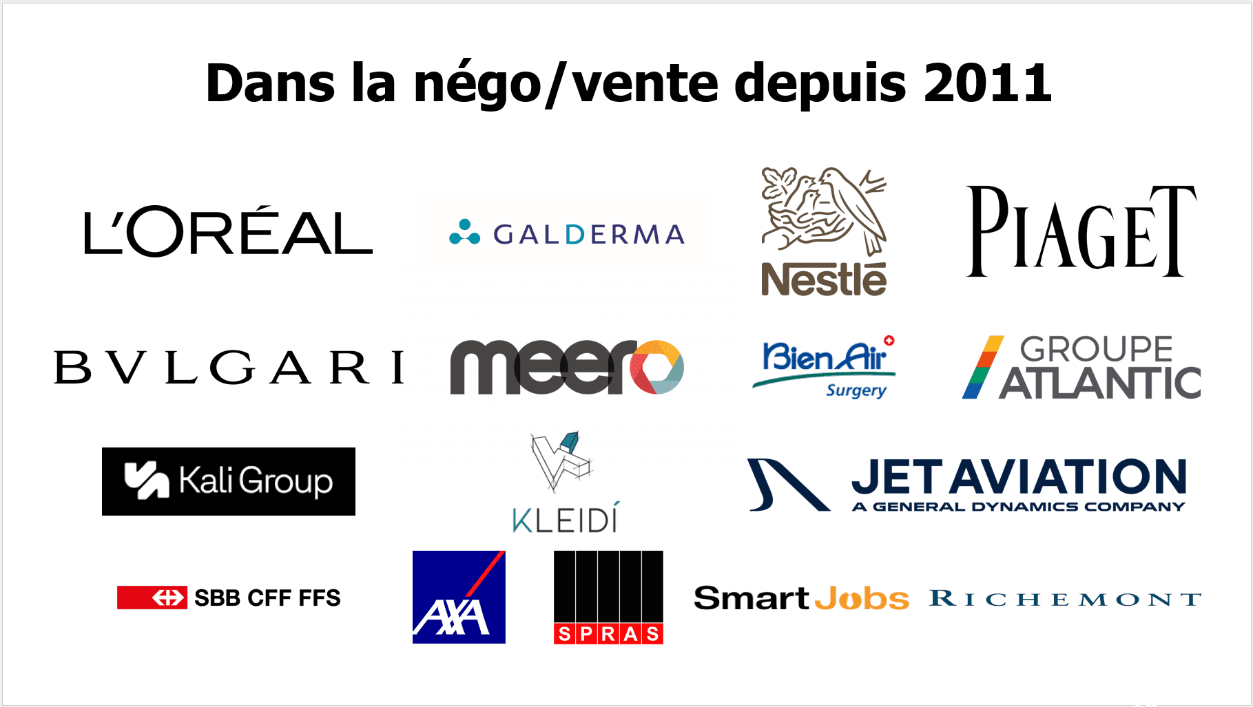 Et dans le cadre de mon business actuel, j'ai vendu mes offres et services à +350 clients, de la petite formation à 79€ à l'atelier en présentiel à 6'200 CHF la journée, en passant par du freelancing à +16'000 € par mission ou du coaching ponctuel.