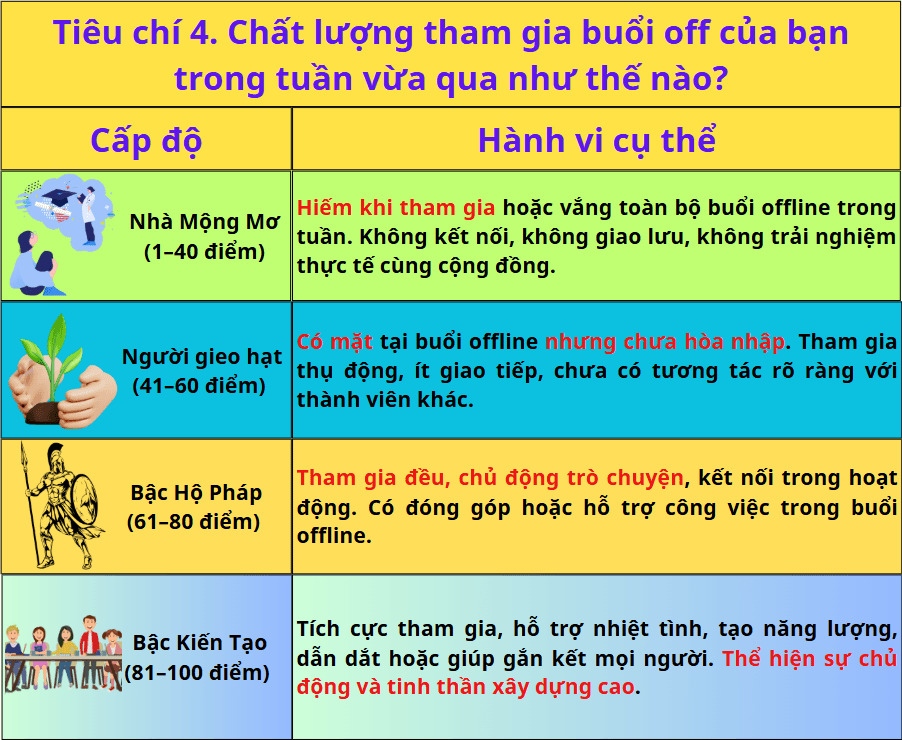Tiêu chí 4. Chất lượng tham gia buổi off của bạn trong tuần vừa qua như thế nào?
