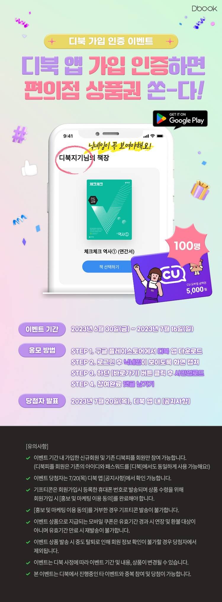 - 경품 당첨자 대상 수집: 디북 닉네임, 휴대폰번호