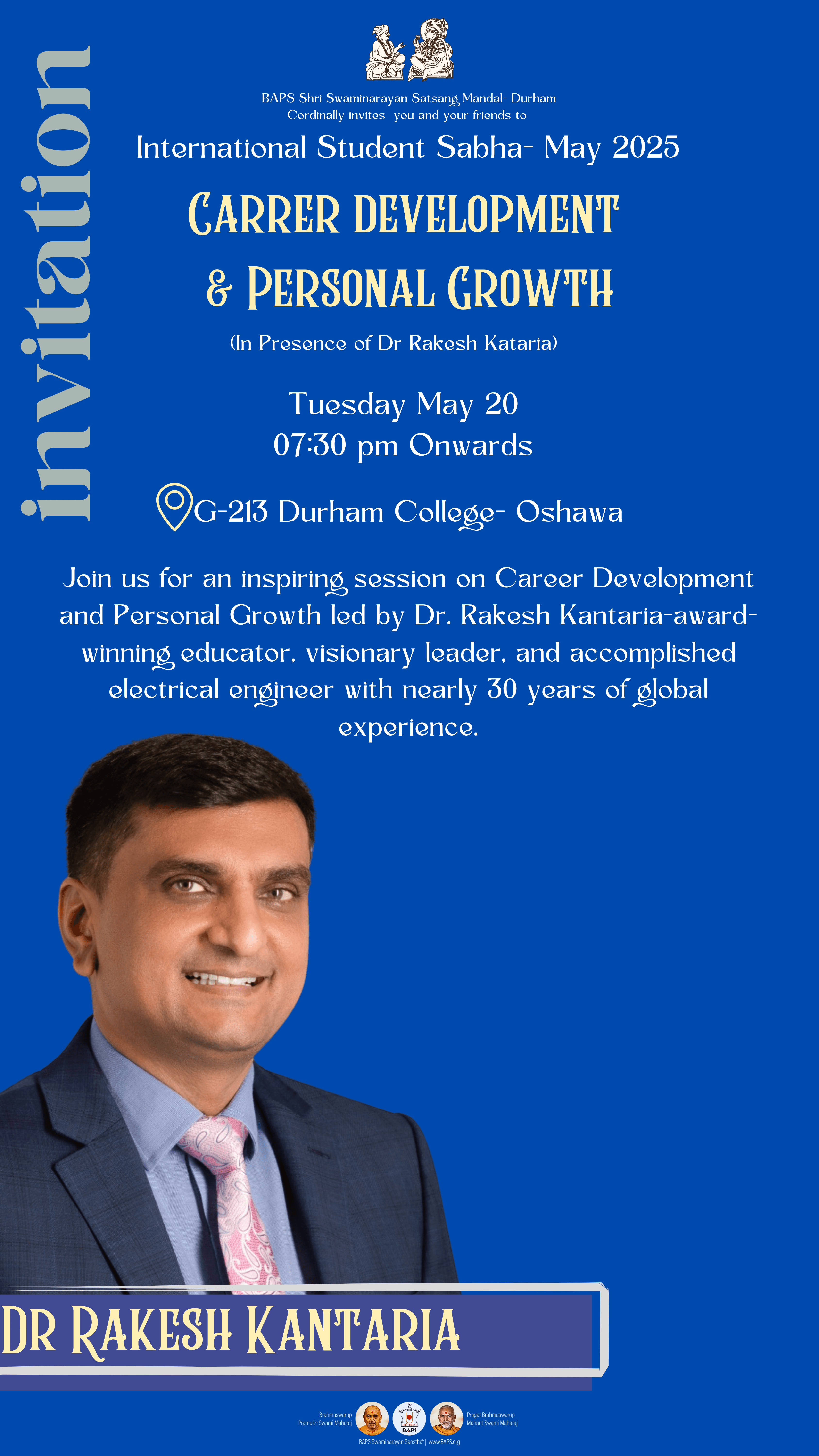 Beyond academic, Dr. Kantaria has supported over 300 newcomers in Canada, conducting 400+ mentorship sessions, and earning recognition as a Top Teaching Voice and Top Electrical Engineering Voice on LinkedIn. He is also an active speaker for NGOs like BAPS, VYO, OACETT, and Sanatan Mandir, and serves as a Board Director at CHCCC.