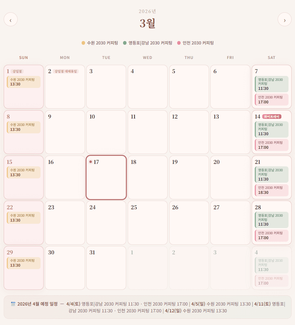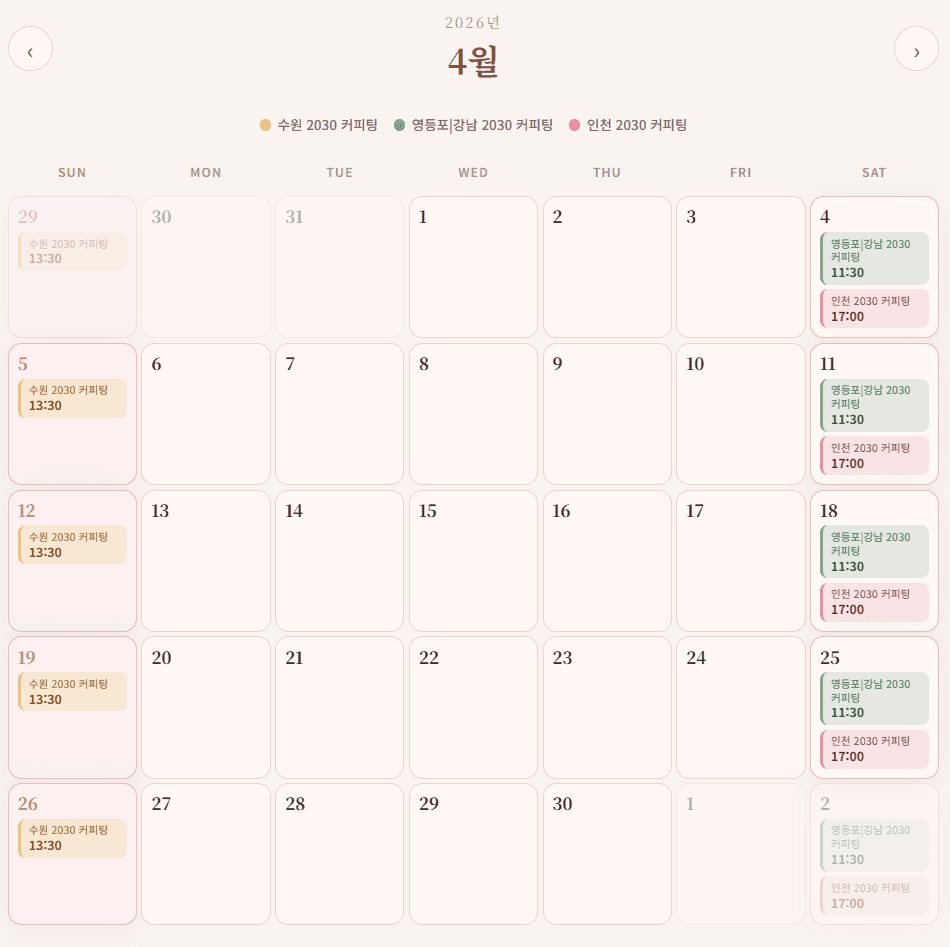 행사 일정과 시간을 정확하게 확인 후, 원하시는 날짜에 신청 부탁드립니다!