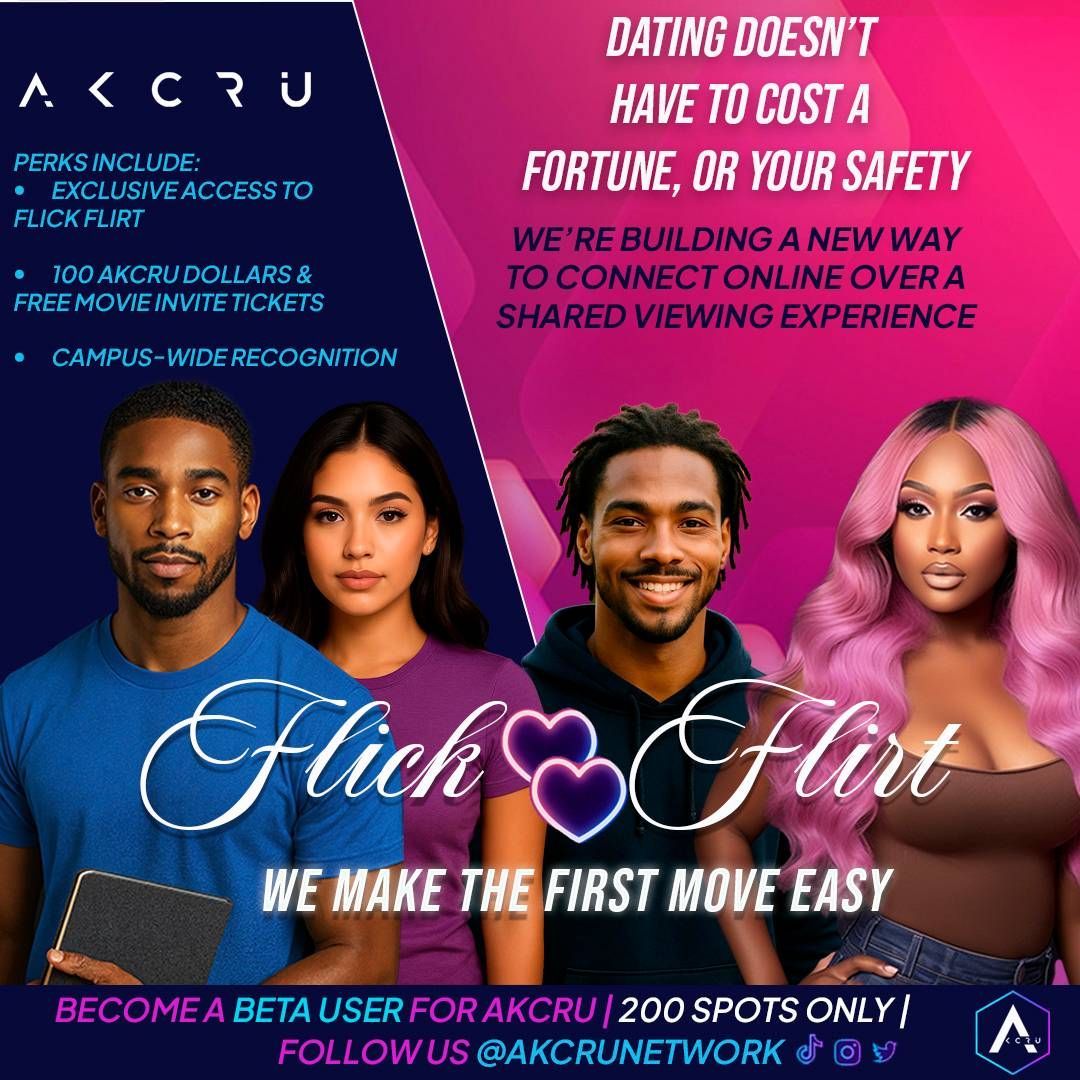 🔥 Become one of the first users on your campus to experience Akcru, the new social streaming app where movies and dating collide. 💜🎬 💜