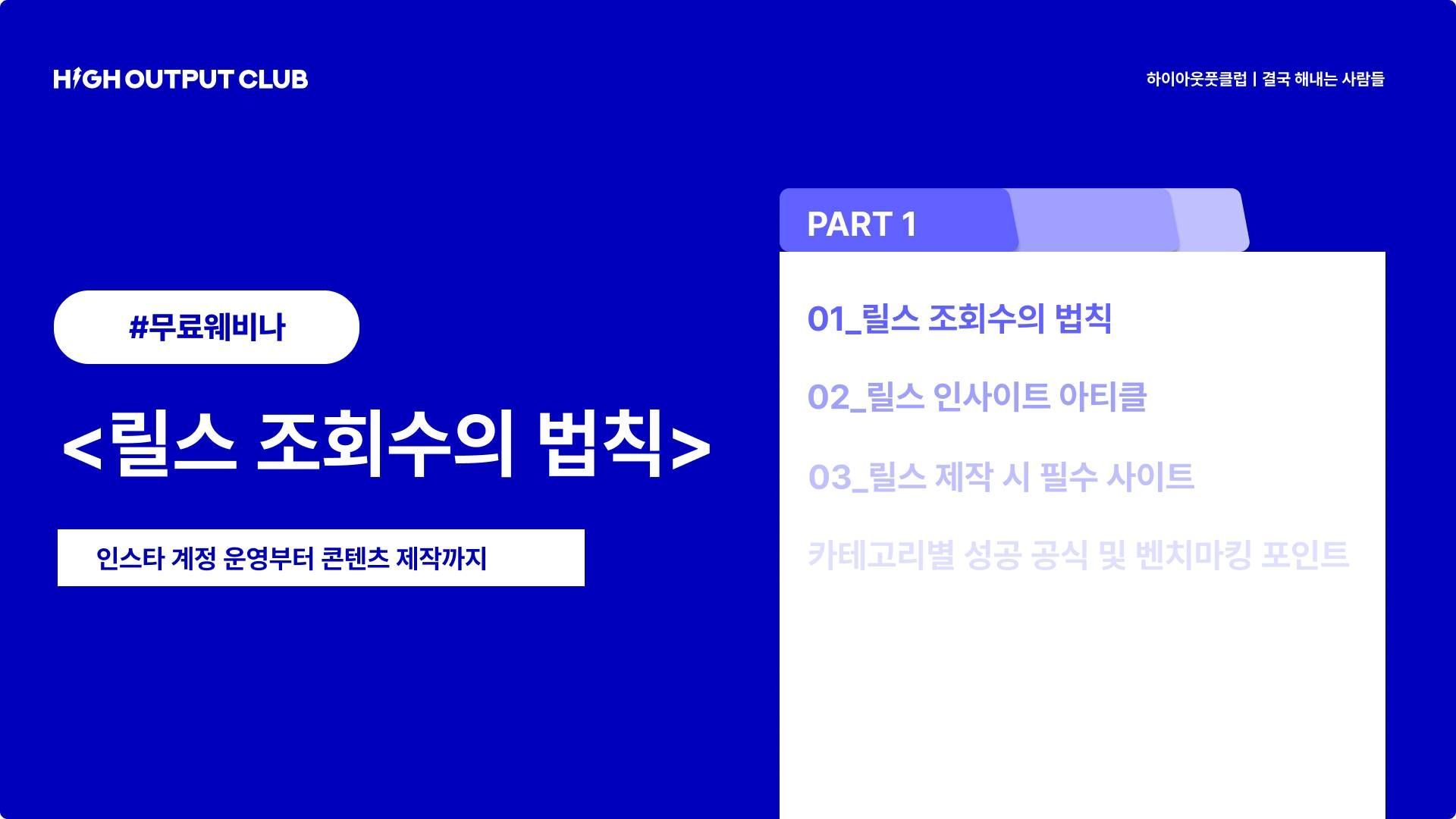 <하이아웃풋클럽 웨비나> 팔리는 콘텐츠, 릴스 조회수의 법칙 후기 이벤트 참여