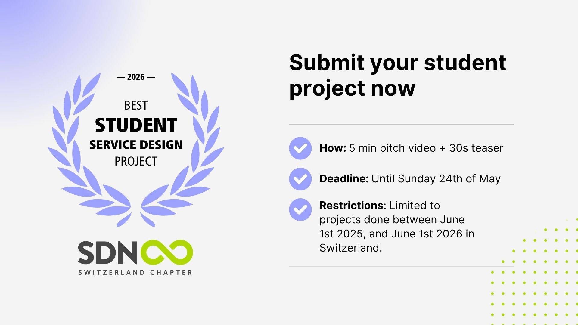 All projects will be displayed on the Swiss Service Design Website, featured during the