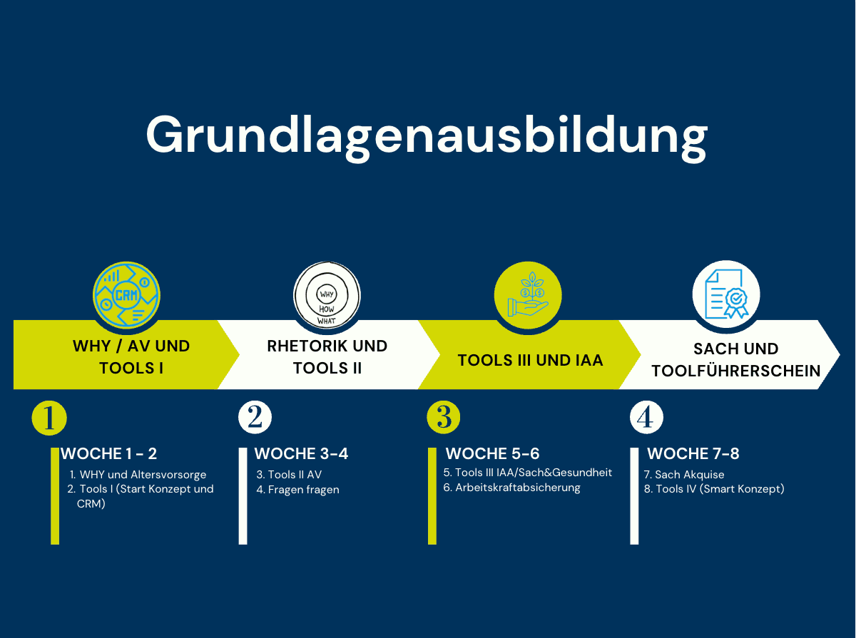 💡 Schneller startklar – sicher im GesprächIn nur 8 Wochen lernst du genau das, was zählt:Verkauf, Tools, Haltung.Nach Abschluss agieren sie selbstbewusster und eigenständiger.